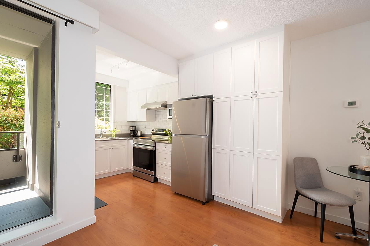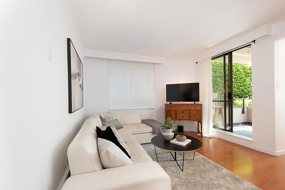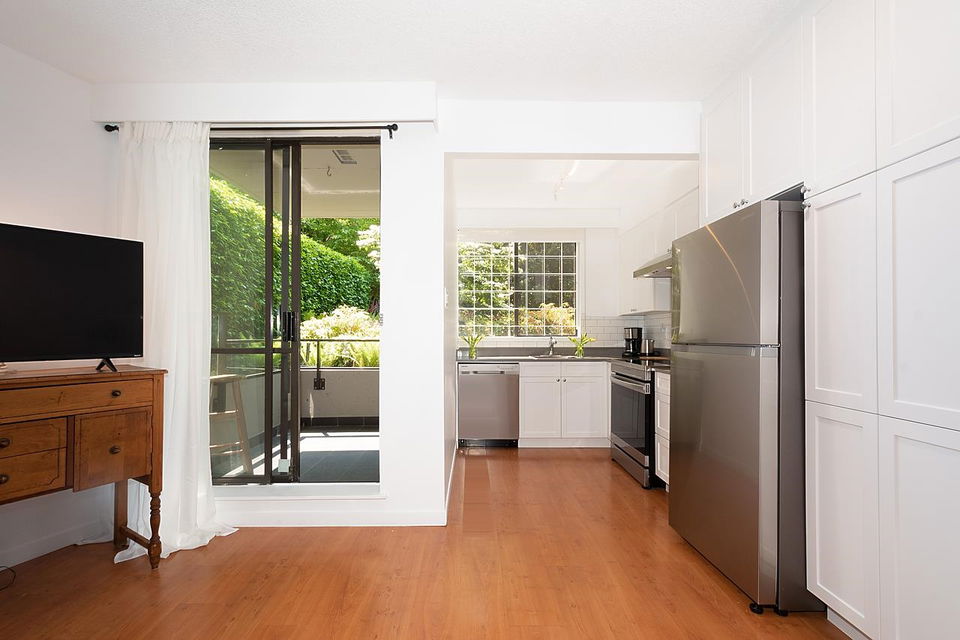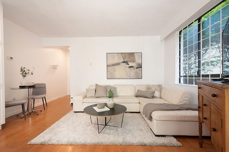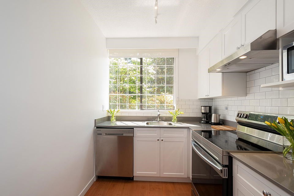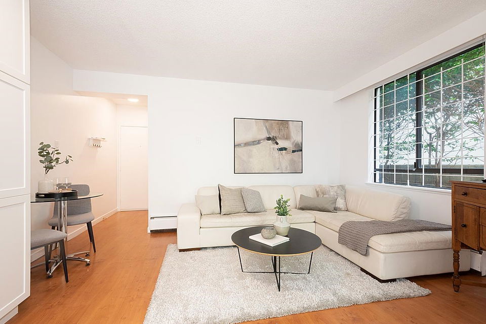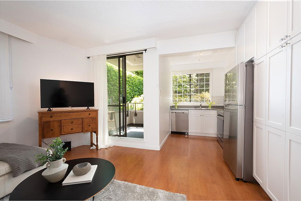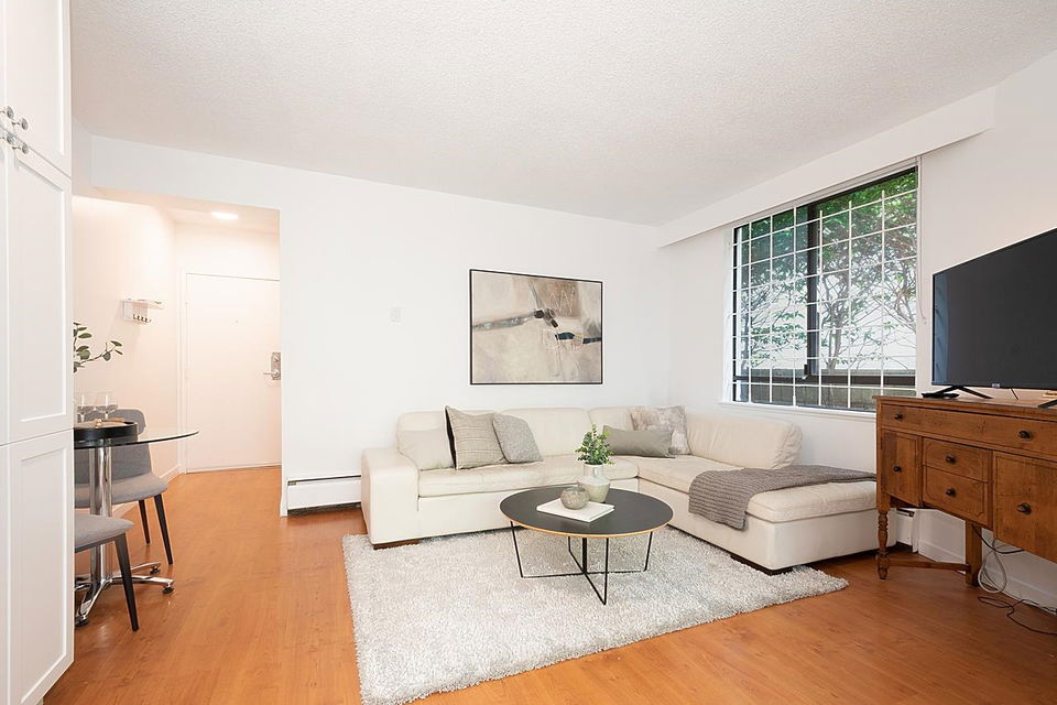 Don’t miss this amazing opportunity to purchase this enchanting 1 bdrm condo in one of the west end’s most treasured freehold concrete buildings! Boasting an efficient floor plan w/ a spacious layout, a fully renovated kitchen, large bedroom, ample closets, & fully renovated bathroom. The serene outlook to mature greenery & a lovely balcony offers additional space & fresh air. Brand new opening security gates over all windows that lock for extra piece of mind. The roof, plumbing, garage membrane, elevator, exterior/interior painting & carpets are completed! Shared laundry is conveniently located on the first floor across the hall. Steps from Davie Village, English Bay, Robson, Denman & Stanley Park. Pet-friendly, secured parking inc.