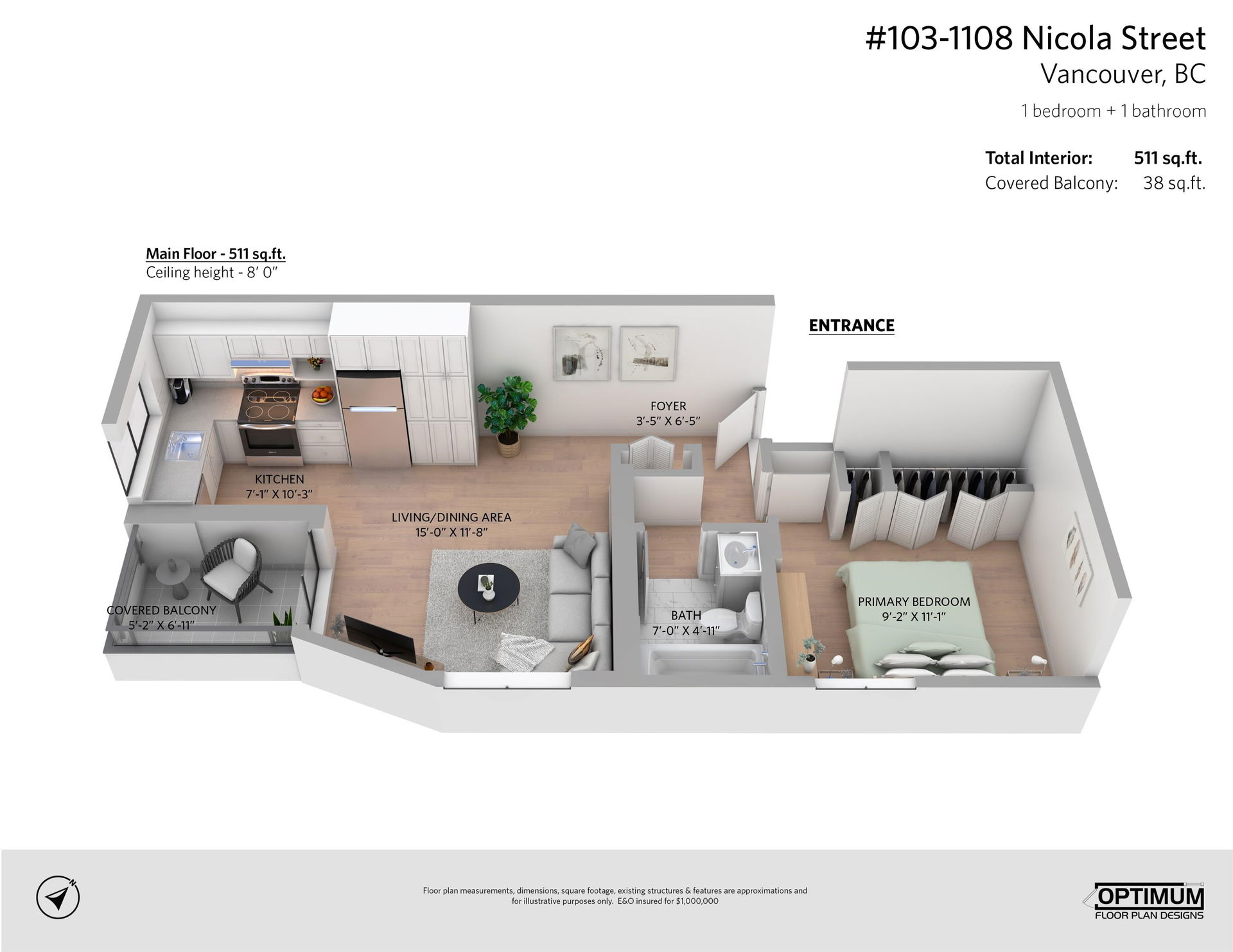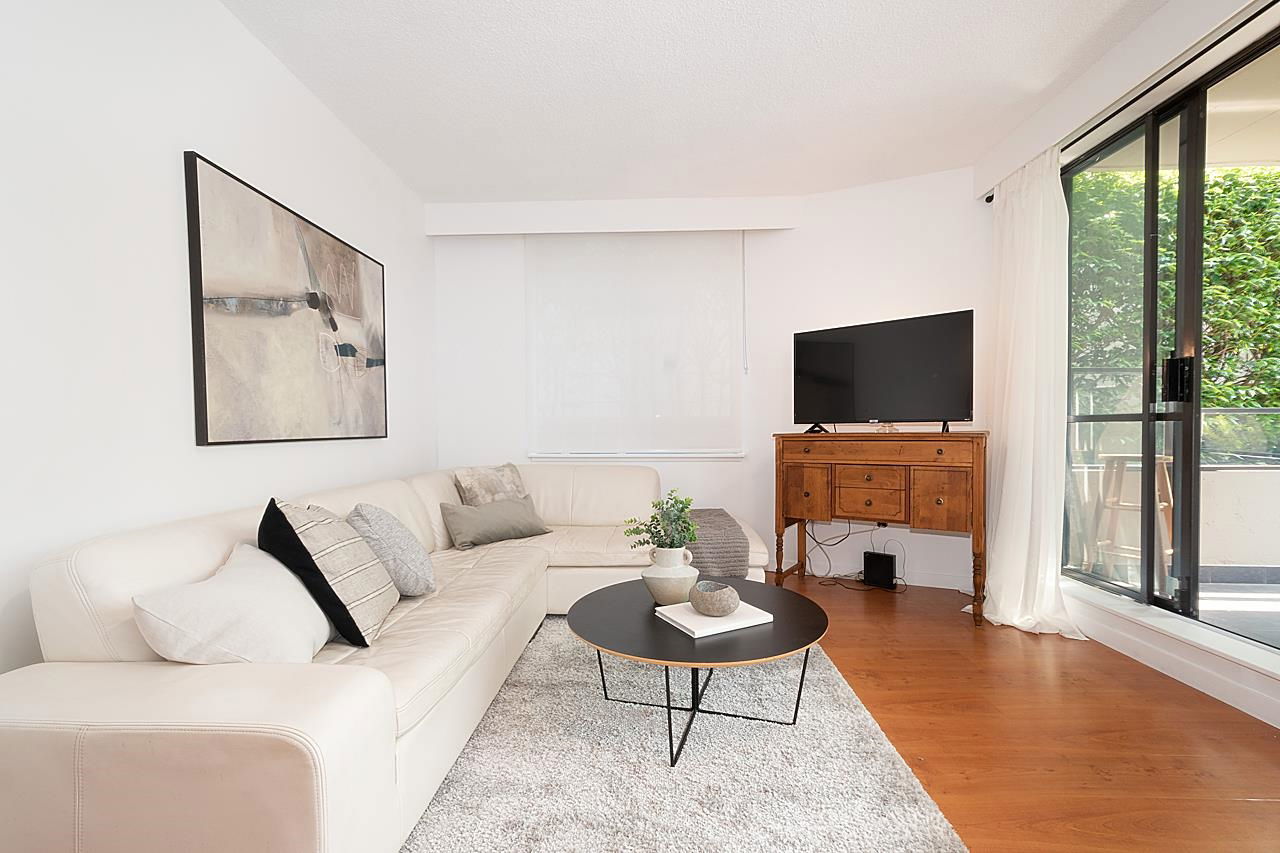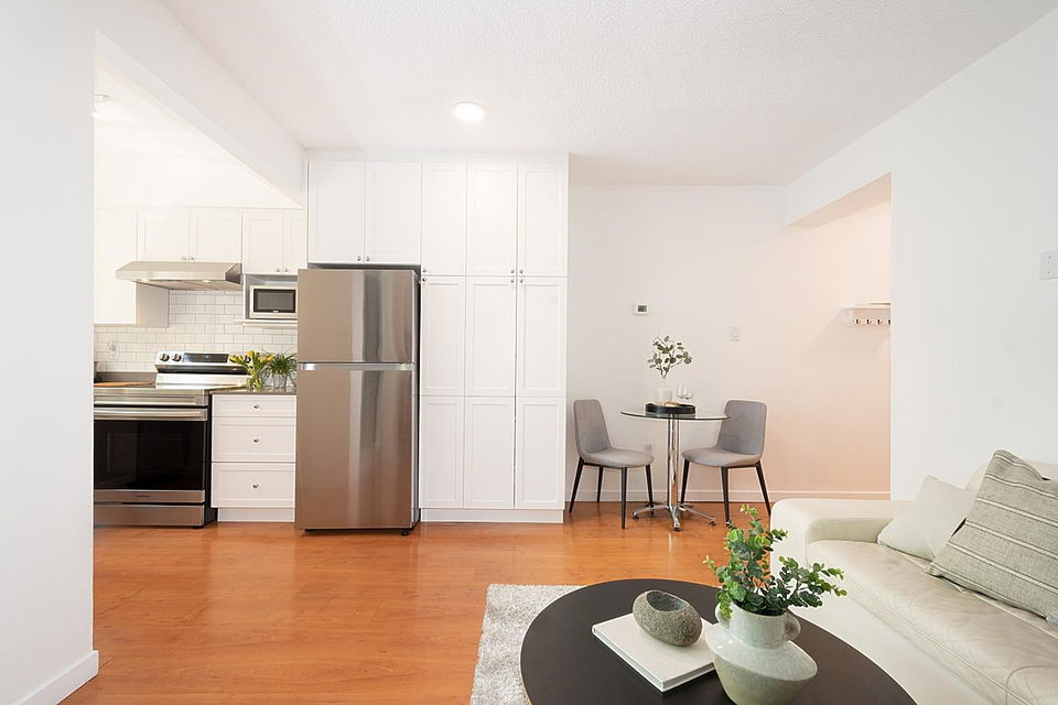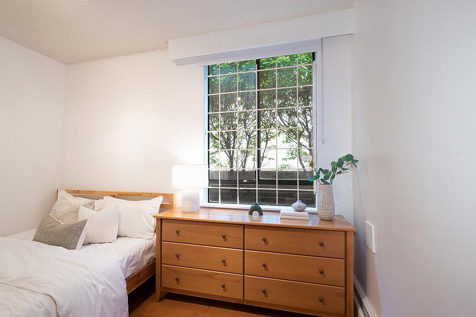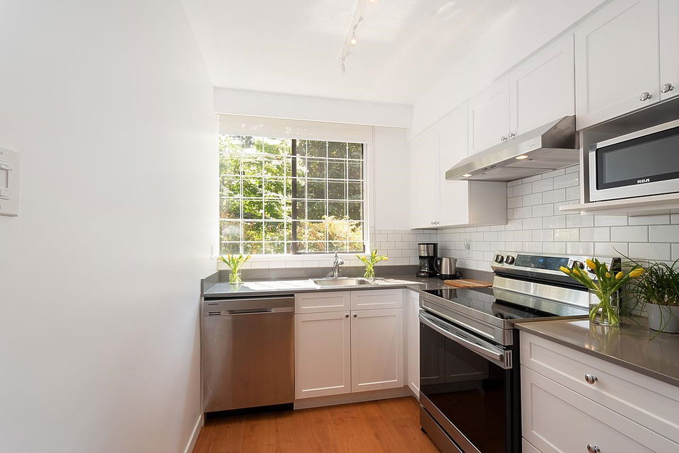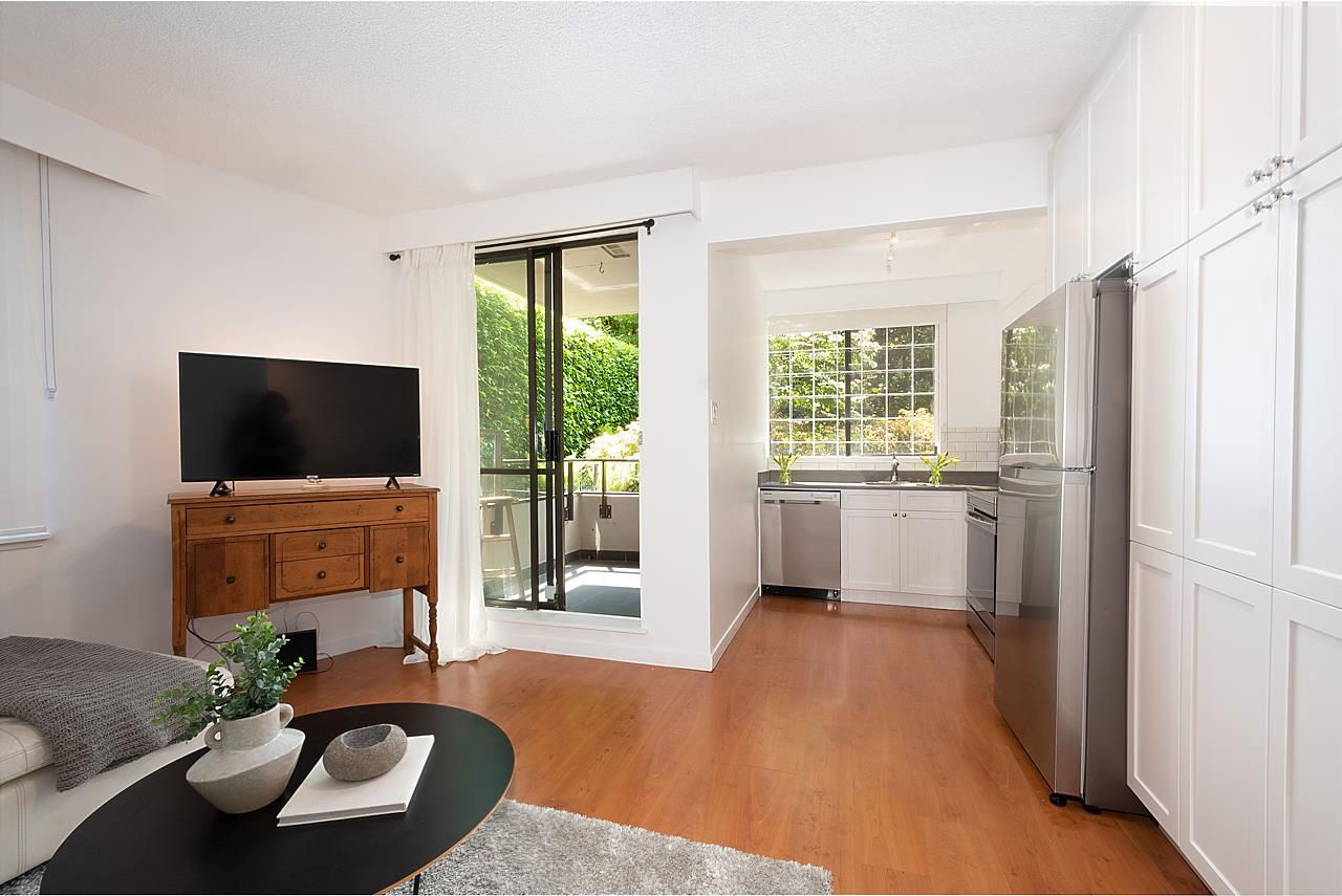 Don’t miss this amazing opportunity to purchase this enchanting 1 bdrm condo in one of the west end’s most treasured freehold concrete buildings! Boasting an efficient floor plan w/ a spacious layout, a fully renovated kitchen, large bedroom, ample closets, & fully renovated bathroom. The serene outlook to mature greenery & a lovely balcony offers additional space & fresh air. Brand new opening security gates over all windows that lock for extra piece of mind. The roof, plumbing, garage membrane, elevator, exterior/interior painting & carpets are completed! Shared laundry is conveniently located on the first floor across the hall. Steps from Davie Village, English Bay, Robson, Denman & Stanley Park. Pet-friendly, secured parking inc.