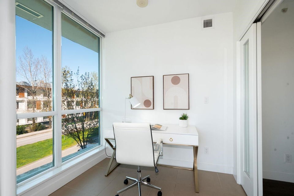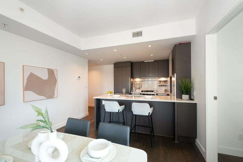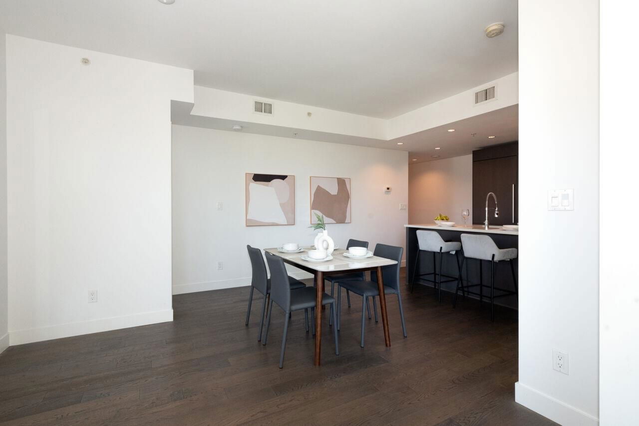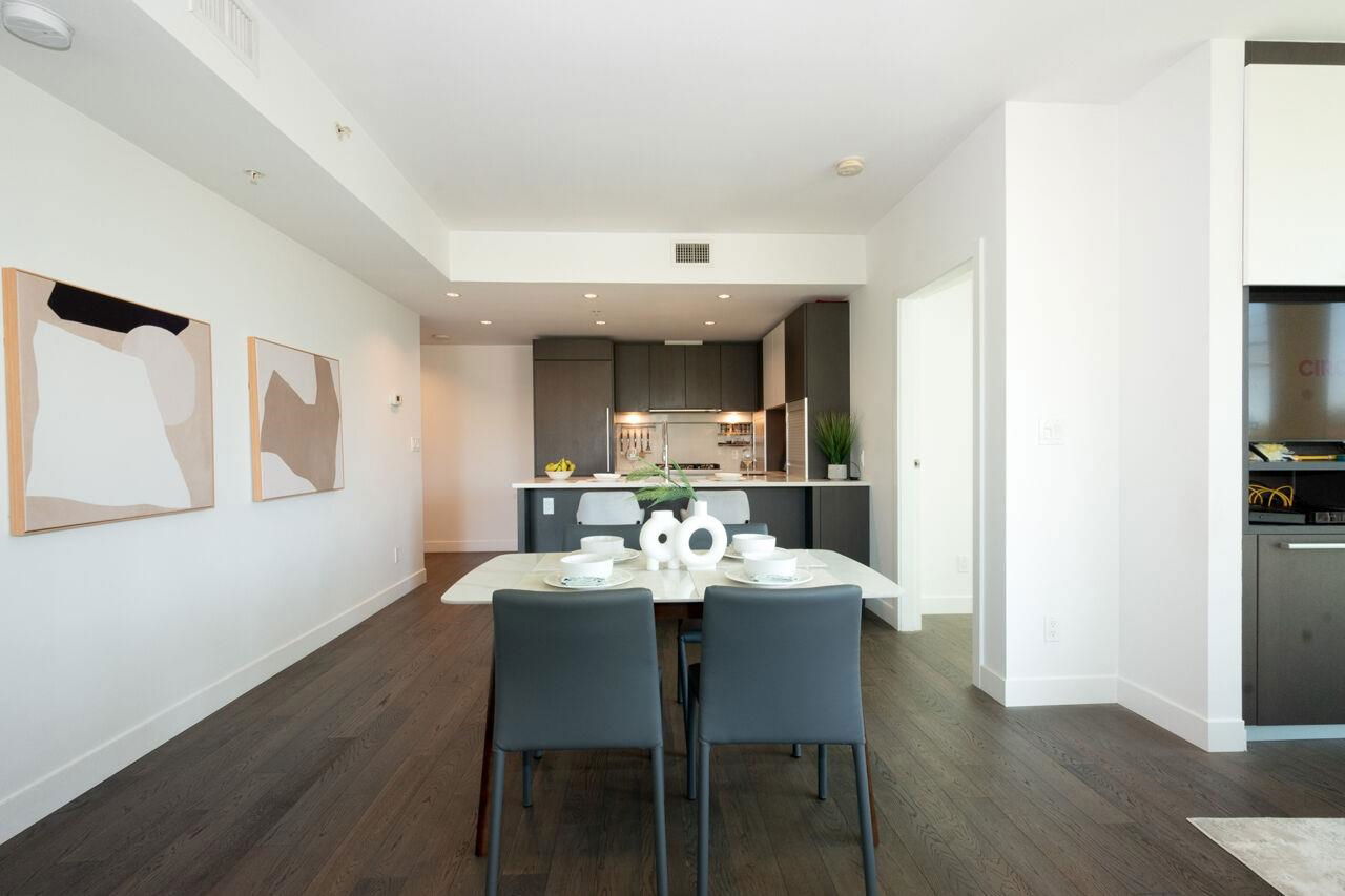 Experience modern sophistication & breathtaking views at James by Cressey. A premier NW corner residence offering elevated urban living in the heart of the city. This meticulously designed 2 bdrm, 2 bath home includes a den & a flex space, providing the perfect blend of functionality & style for professionals, small families, or anyone in need of a versatile layout. Enjoy the high end kitchen, featuring sleek cabinetry, top of the line appliances & generous counter space. The bright, open-concept living & dining areas extend seamlessly onto a covered balcony, ideal for entertaining or relaxing while taking in the stunning city skyline. Comfort is key with A/C, concierge, & resort-style amenities inc. a spectacular roof top lounge as well as parking & storage!