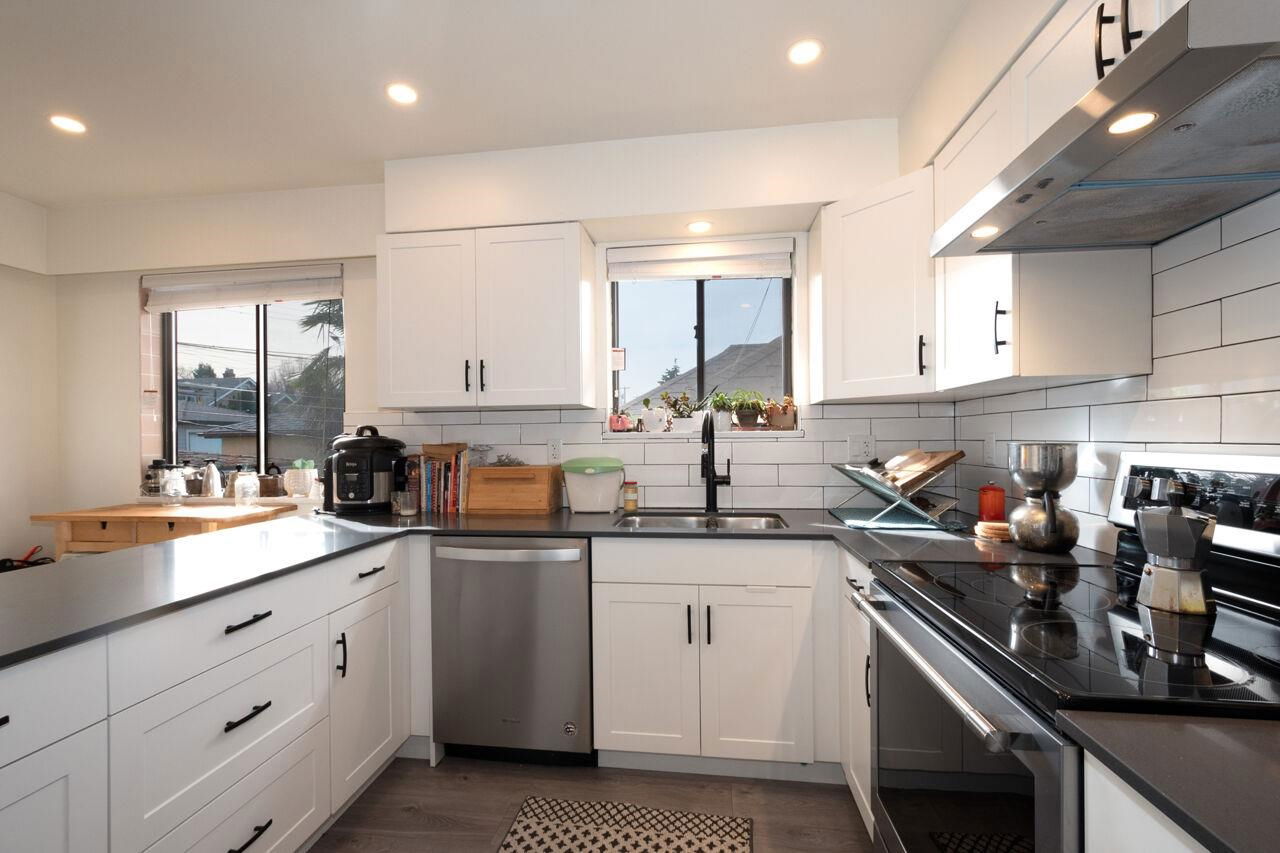 Just what you’re looking for! A fantastic Vancouver special with mountain views, great location, with Clinton & Garden parks are just a stone’s throw away. Boasting 3 bdrms on the upper floor with an updated bathroom, kitchen & new appliances in 2021, gas f/p & sunny south facing deck for all your al fresco entertaining. The drain tiles around the perimeter of the home have been done. The main floor has a charming 1 bdrm mortgage helper with a great option to convert to a 2nd 2bdrm if needed. Notre Dame, Lord Nelson & Garibaldi Annex are close by. Add to the cache, great transit, close to the N Shore, #1 Hwy, the Drive and all your shopping and dining needs at your fingertips! This charming and well cared for home is ideal to renovate, move in, simply hold or build. Open house Saturday April 6th 2-4