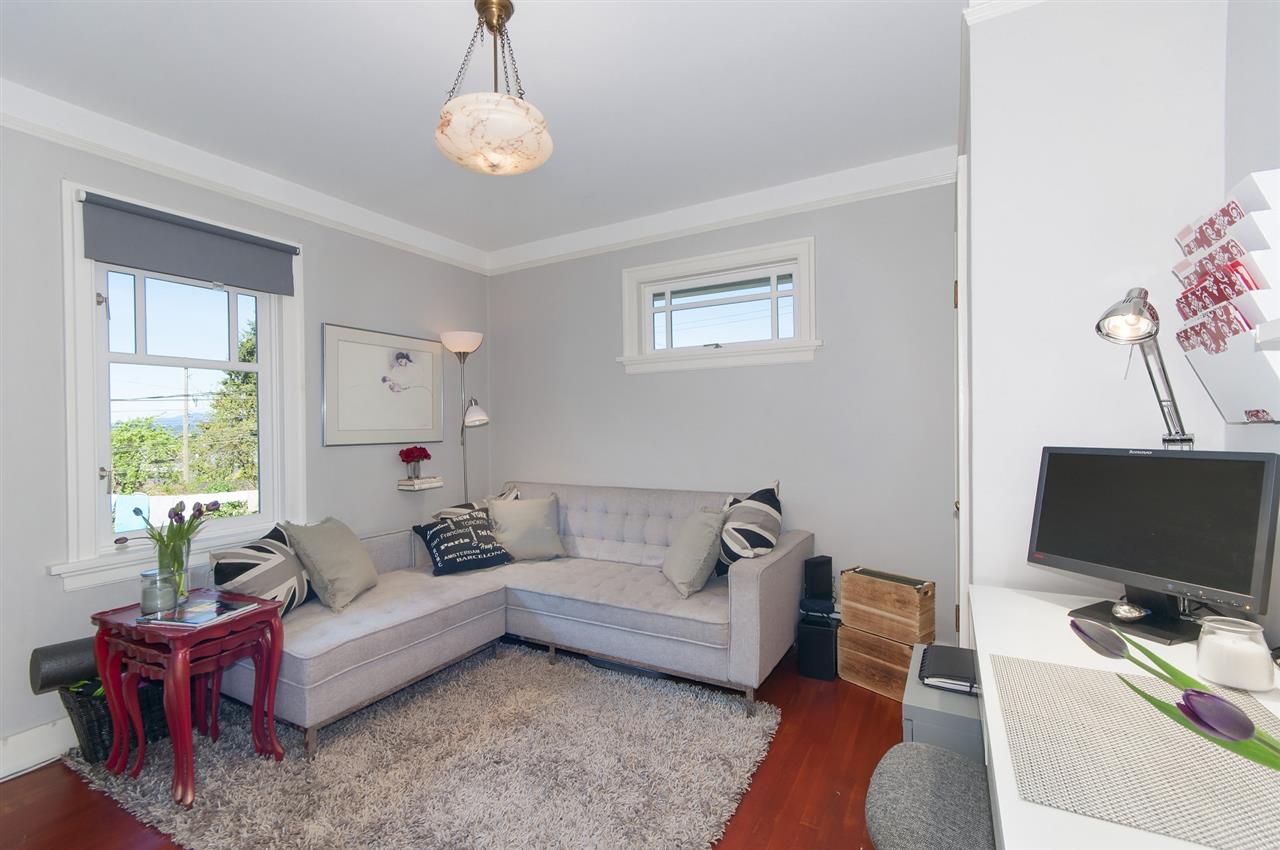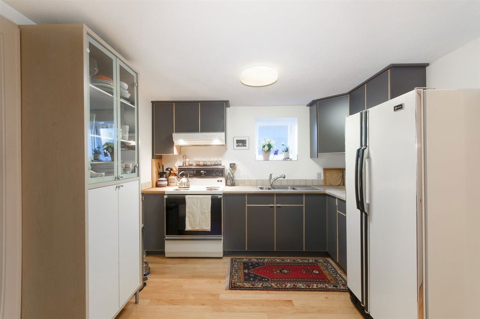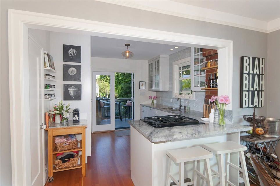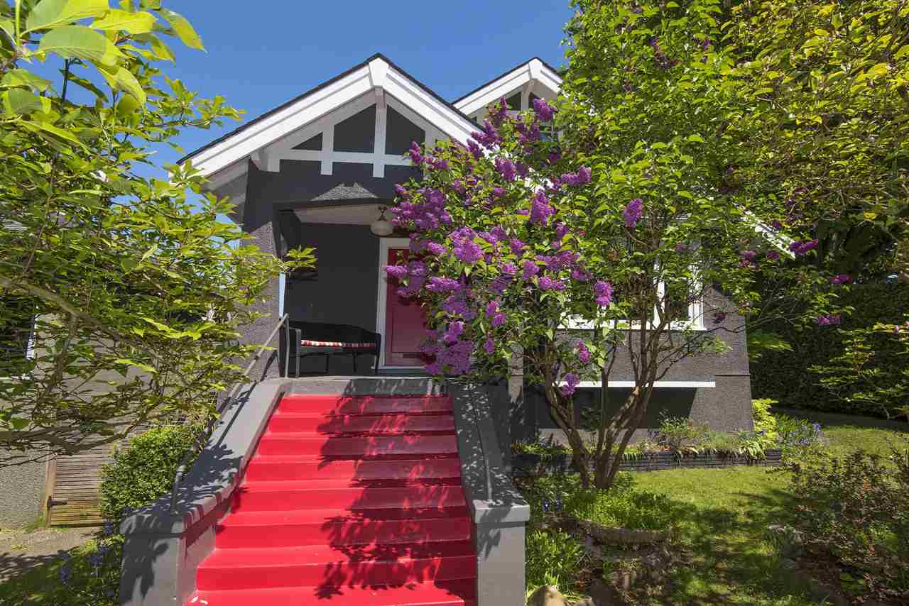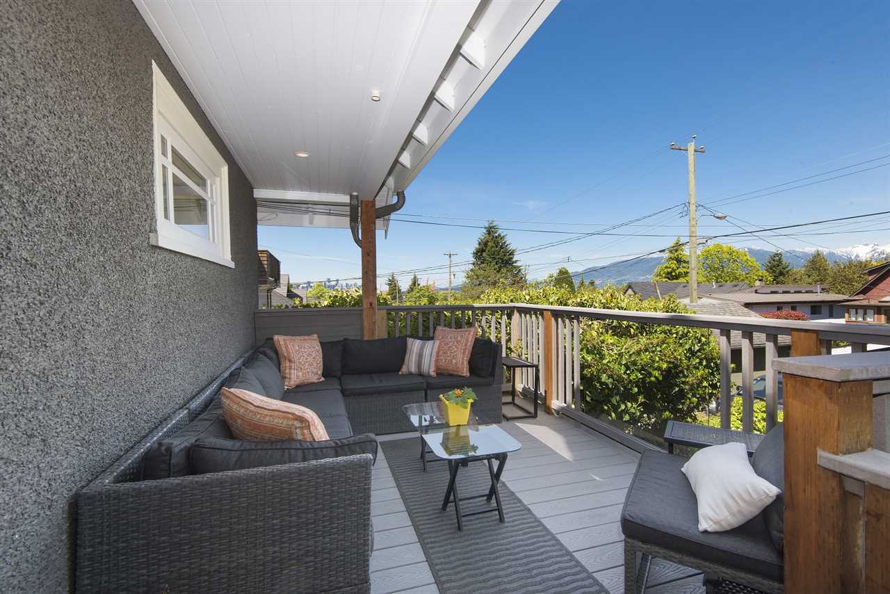 Offering an enchanting corner lot, completely hedged to add additional protection from sound & traffic this ideal family home is now available. Massively bright & airy, 4 bdrms, & 2 mortgage helpers this home has been extensively renovated to perfection. With fetching views of downtown, Lions Gate and the North Shore from the expansive deck off the kitchen, this wonderful property is ideal for entertaining. Close proximity to great parks, shopping, transit, DWTN/NS, Hastings catchment and French Immersion. Complete with gas range, f/p, h/w flooring, dbl car garage, & an abundance of windows on all sides creating beautiful cross breezes and showering sunshine.
