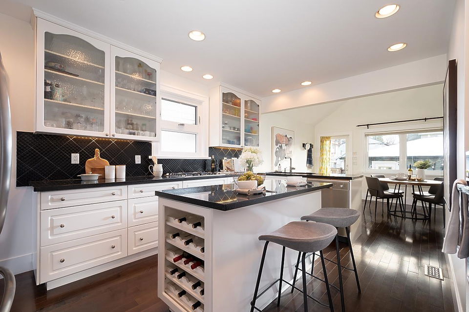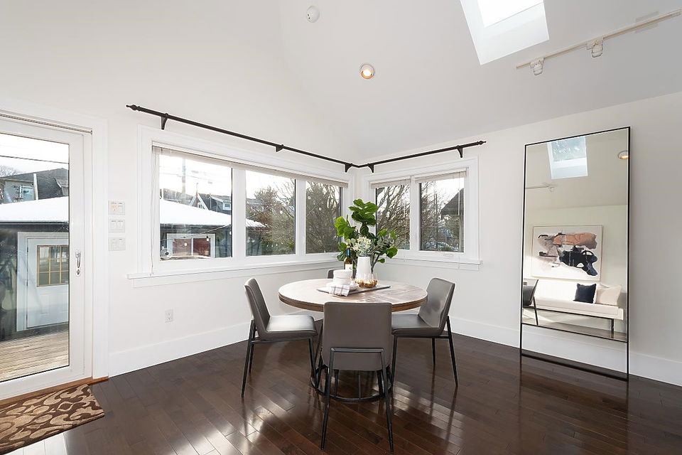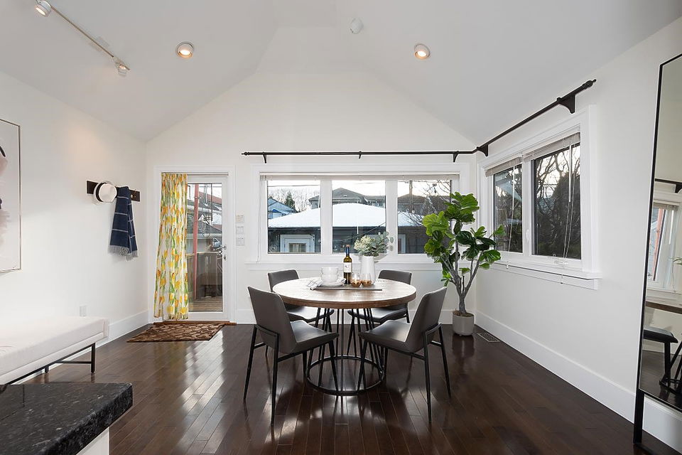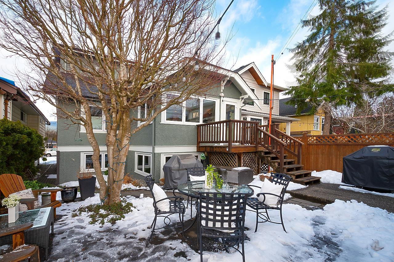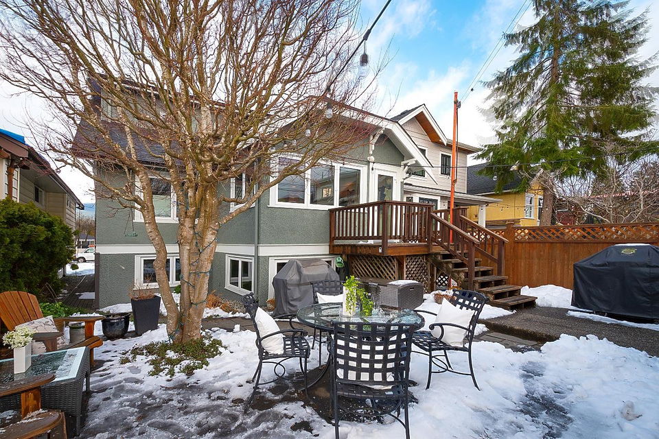 Possibly one of the best blocks in Hastings Sunrise. A meticulously updated family home with dbl garage, south facing back yard, 2 bd mortgage helper, and stunning views of the NS. Top floor principle bdrm has gas f/p, balcony, W/I closet, and ensuite with infrared sauna. The main floor boasts a living room with gas f/p, one bdrm, full bath, 2nd bdrm/office that could easily be converted into a 3rd bdrm, and huge family style entertaining kitchen. Adding to the cache, enjoy the Trinity Street Christmas lights, Halloween festivities, proximity to the NS, Hwy 1, Downtown, and SFU. Everything you want is all within walking distance including Burrard View & New Brighton Park and Pool.