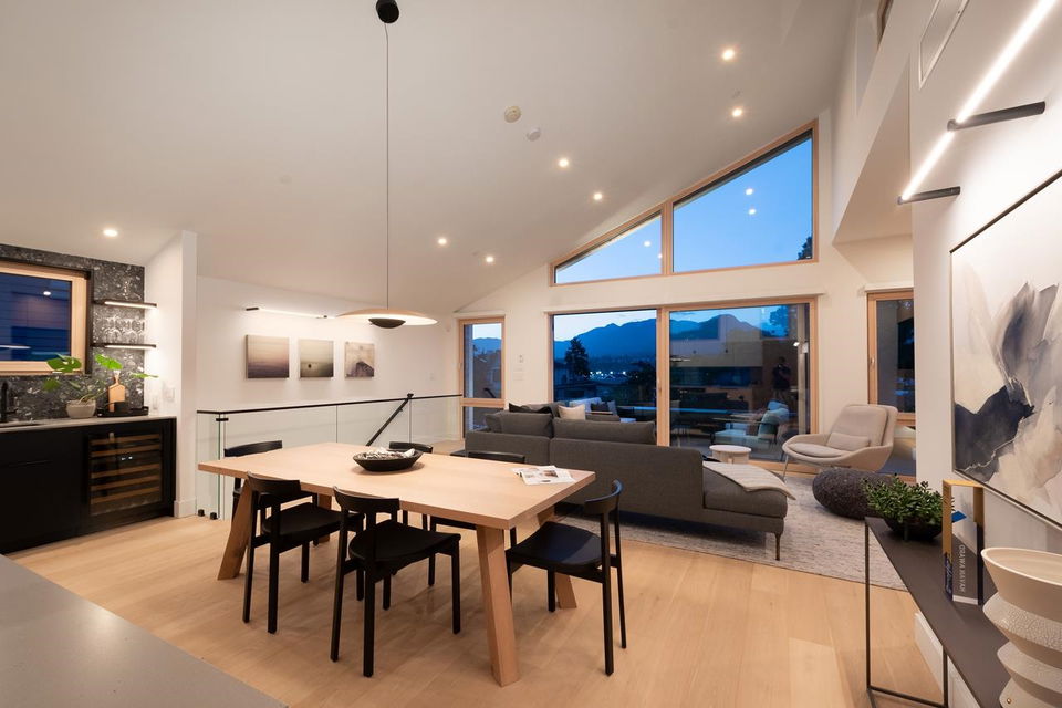 Nick Bray’s architectural work of art & Ami McKay’s stunning modern interior design created this HAVAN award-winning masterpiece of a home. Boasting 15-ft ceilings with massive triple-glazed wood windows, this energy efficient home is flooded with natural light from all directions. With remarkable views of the Burrard inlet & mountains this home offers 3106 sq ft of thoughtful design. In floor radiant heat A/C gas fireplace 5 bed 4.5 bath, white oak floors and cabinetry throughout. Sub Zero fridge and wine fridge, Wolf 5 burner gas cook top, wall oven, and convection steam oven. With a south facing back yard north facing view deck and 2 bd/2bath mortgage helper there were absolutely no expenses spared, you will not want to miss this one!