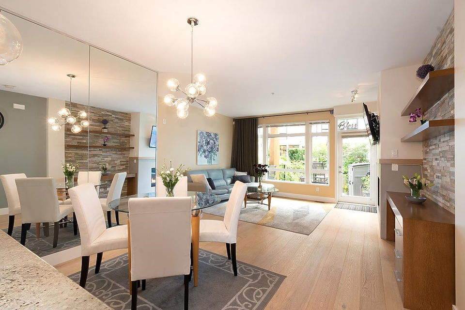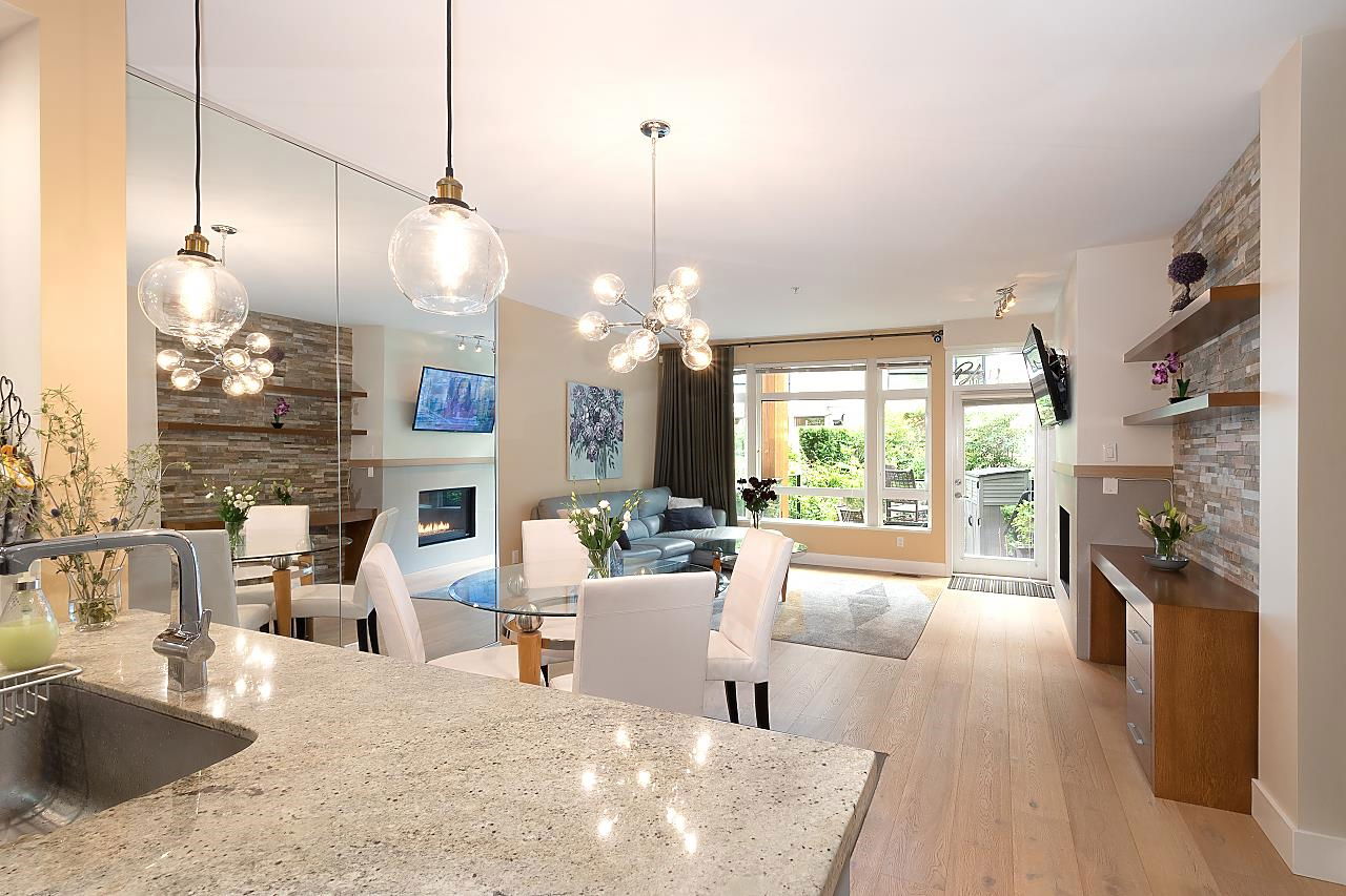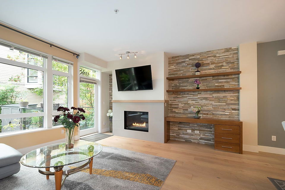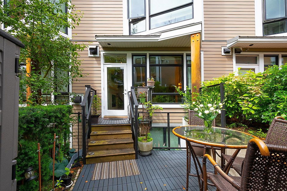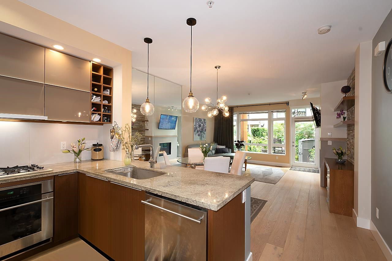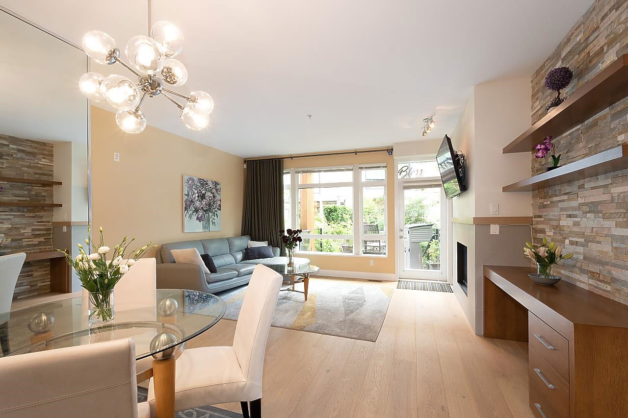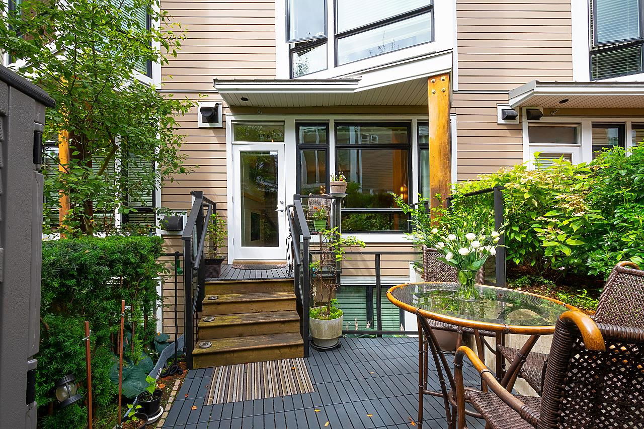 Located in the heart of Hastings Sunrise, this outstanding 3 bdrm, 2 full bath family townhome is immaculately presented & has been designed for easy living. This home is flooded with natural light from the enormous windows & offers an open living area w/ over height ceilings, S/S appliances, gas range, granite countertops, heating & AC inc. in the maintenance fee are just the beginning of what this fantastic residence has to offer. H/W flooring, gas f/p, a massive amount of storage. Entertaining on your private patio with lovely views of the Inlet & mountains. Add a green space walk out off the front perfect for pets. All this adds to the magical cache of this property. DT, #1 parks, restaurants & shopping all at your fingertips. Open house Saturday Sept 10th 12:00-1:30
