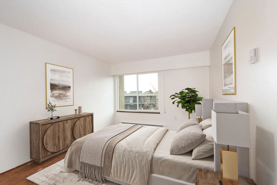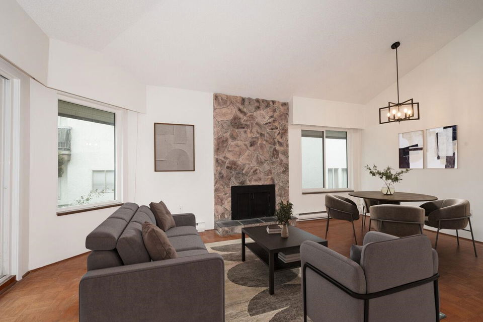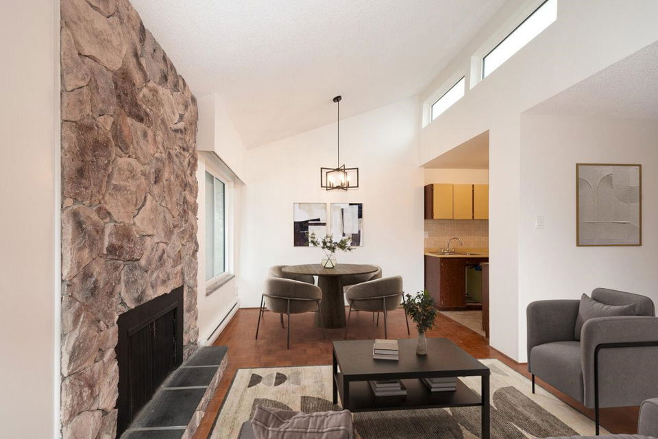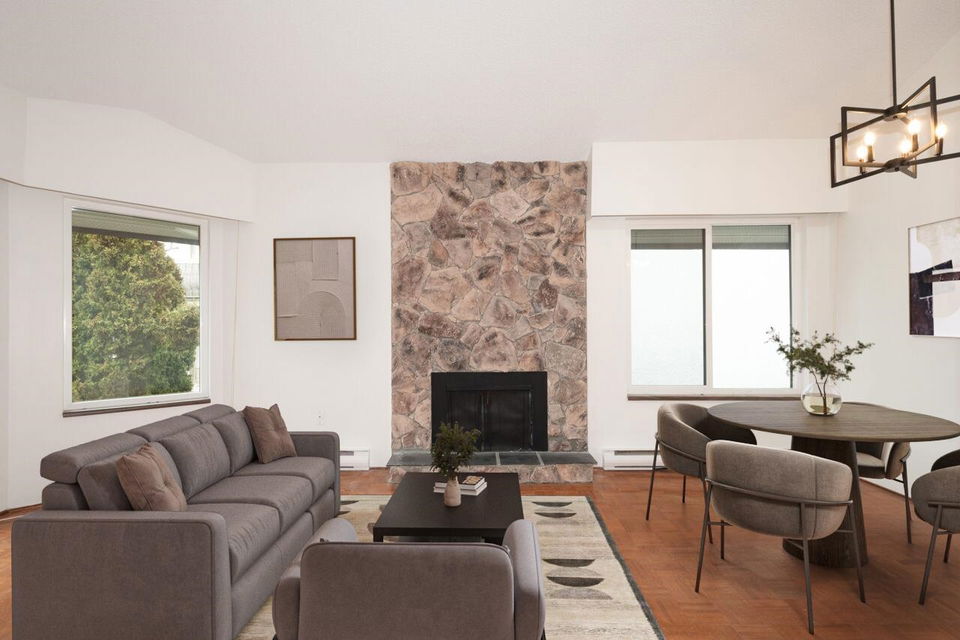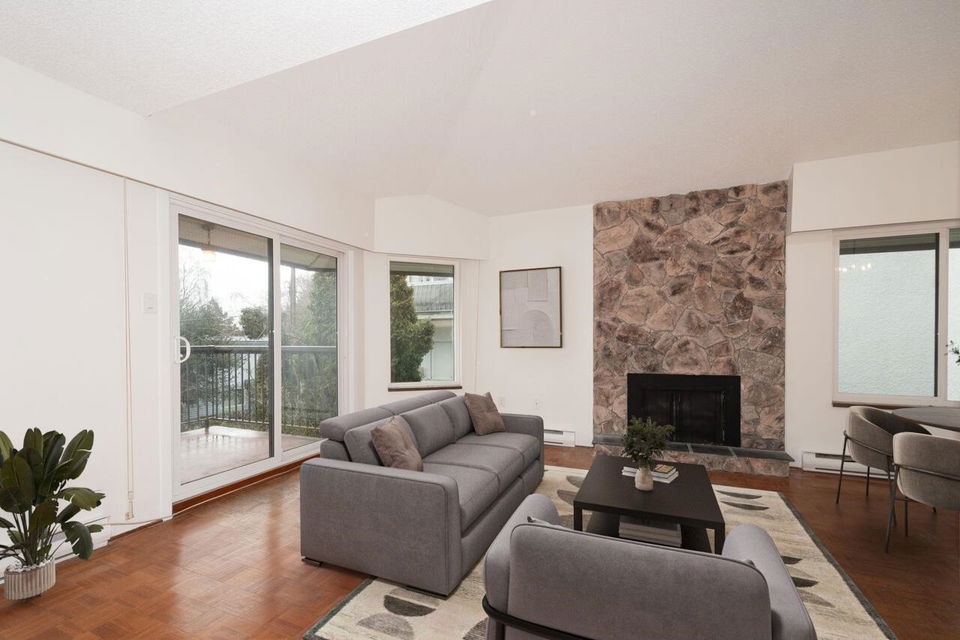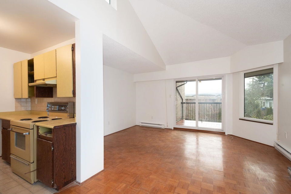 Welcome to Trinity Apartments, where charm meets convenience in the heart of Hastings-Sunrise! This 880 sq. ft. home offers breathtaking North Shore mountain views from your private balcony. Featuring two spacious bedrooms, 1.5 baths, a cozy gas fireplace, and beautiful parquet flooring, this freshly painted condo is ready for your final touch. A simple kitchen & bath update will make this home sparkle. Located in one of Vancouver’s most vibrant communities, you’re close to New Brighton, Cambridge, McGill, & Burrard View parks, many transit options, & shopping all a stone’s throw away. With a 77 walk score errands are a breeze, you’ll love exploring the neighbourhood’s trendy cafés,& markets. Don’t miss this rare opportunity—schedule your viewing today! Open House March 9 no dogs