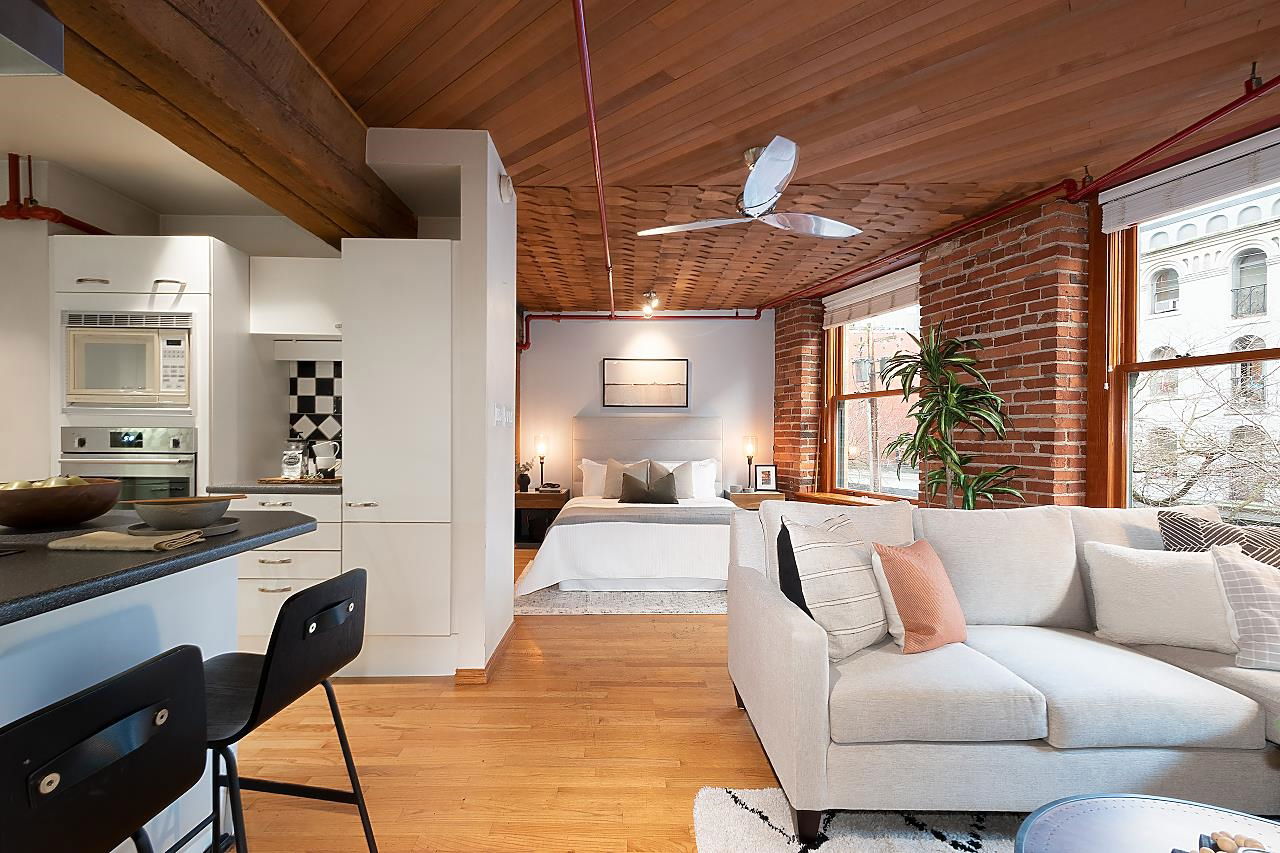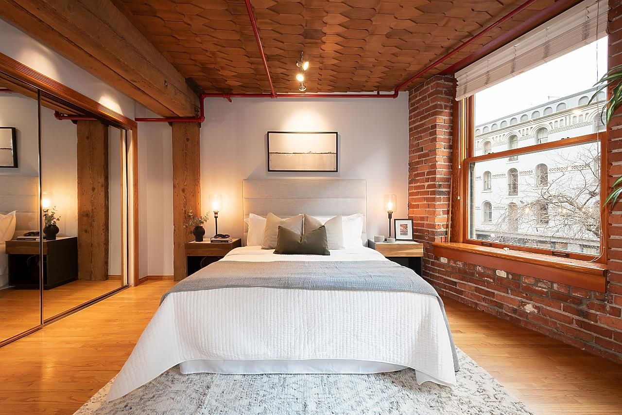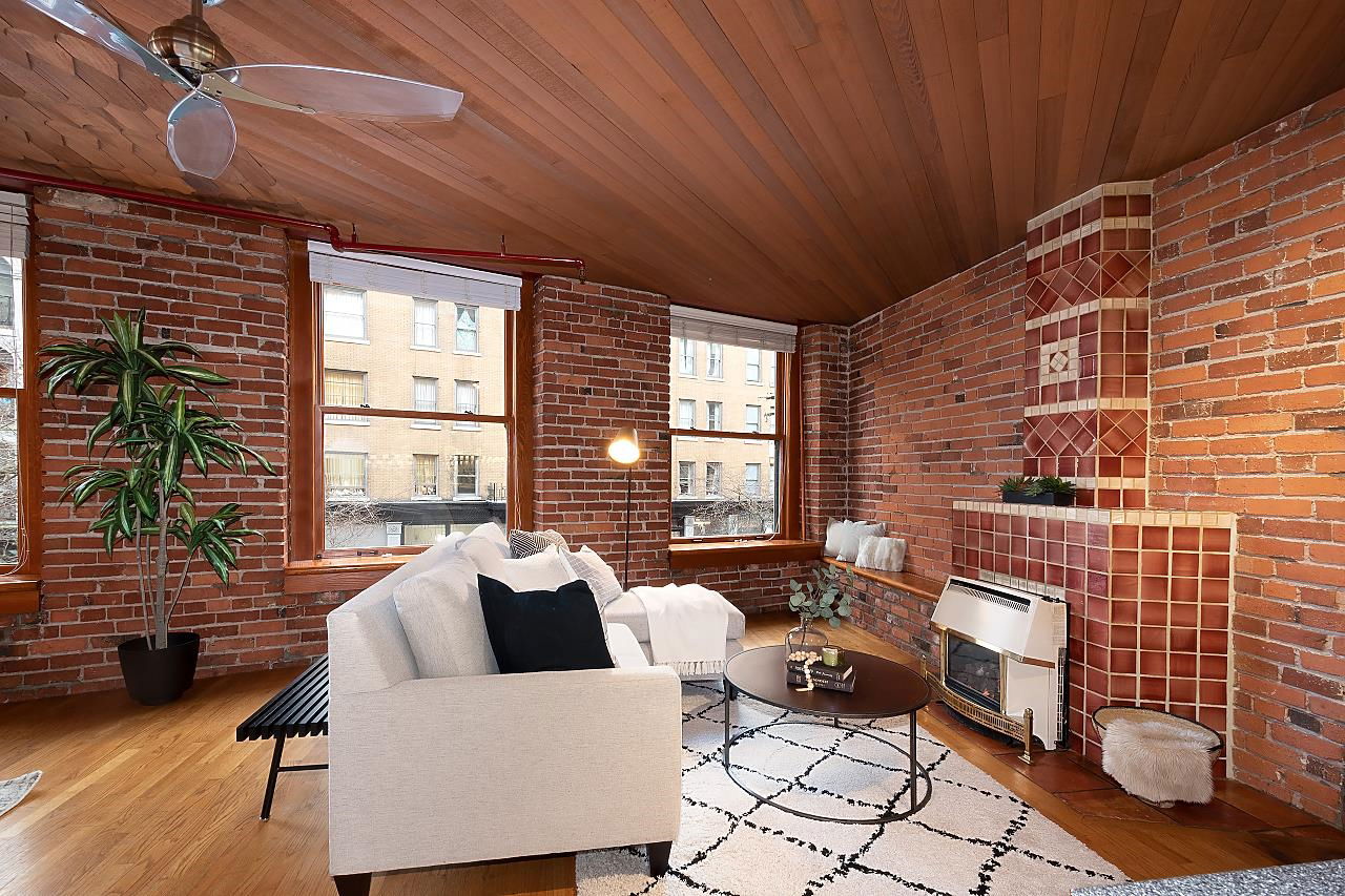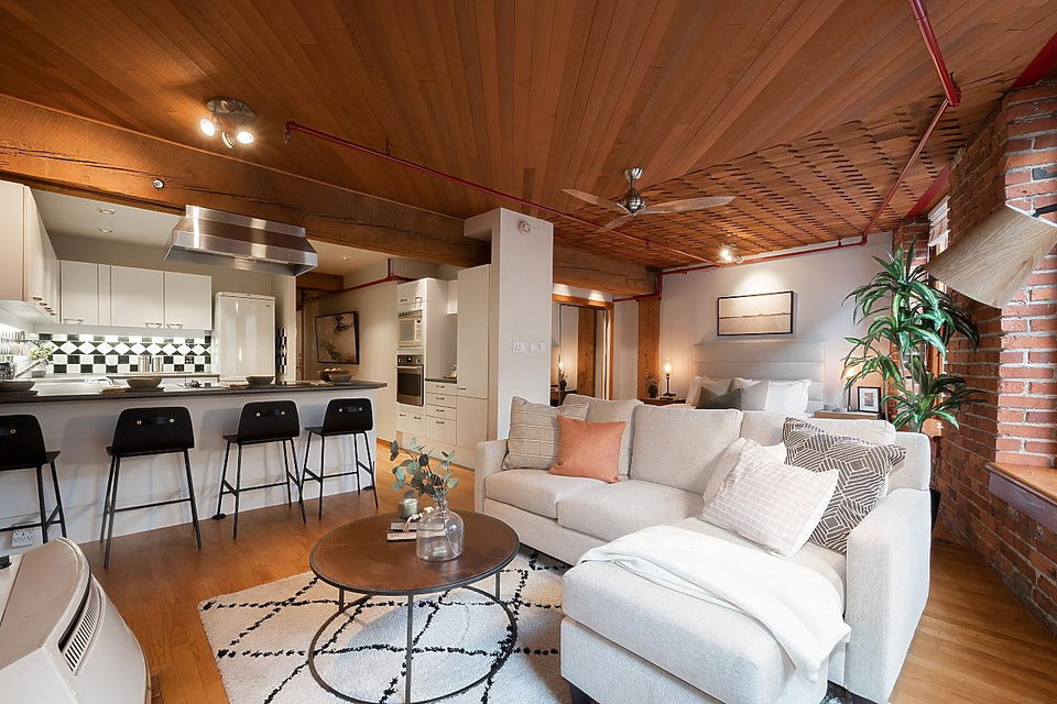 Located in the heart of historic Gastown this unique well-presented modern spacious loft benefits from a secure underground parking spot, storage, outstanding roof terrace with garden plots, gas BBQ, & exceptional views to the north, south east & west. Complete with insuite laundry, pets welcome and gas fireplace. Adding to the cache H/W flooring, open concept and move in ready!. Situated on the 3rd floor of a contemporary boutique development with lovely south facing Gastown views. Rentals allowed but restricted, minutes to DT, the Drive, Mount Pleasant and Hastings Sunrise. This won’t last open house Saturday January 22nd and Sunday January 23rd 2-4 PM *BY APPOINTMENT ONLY*