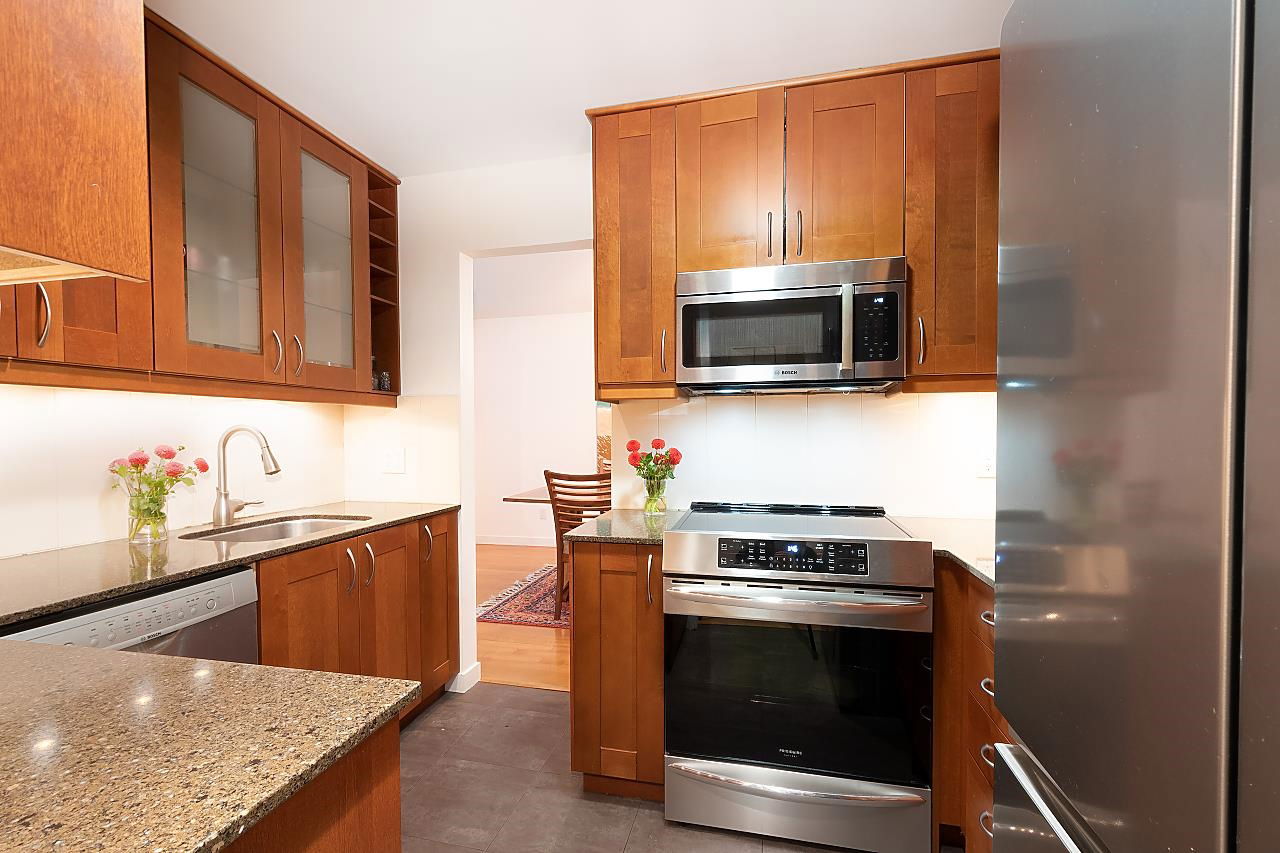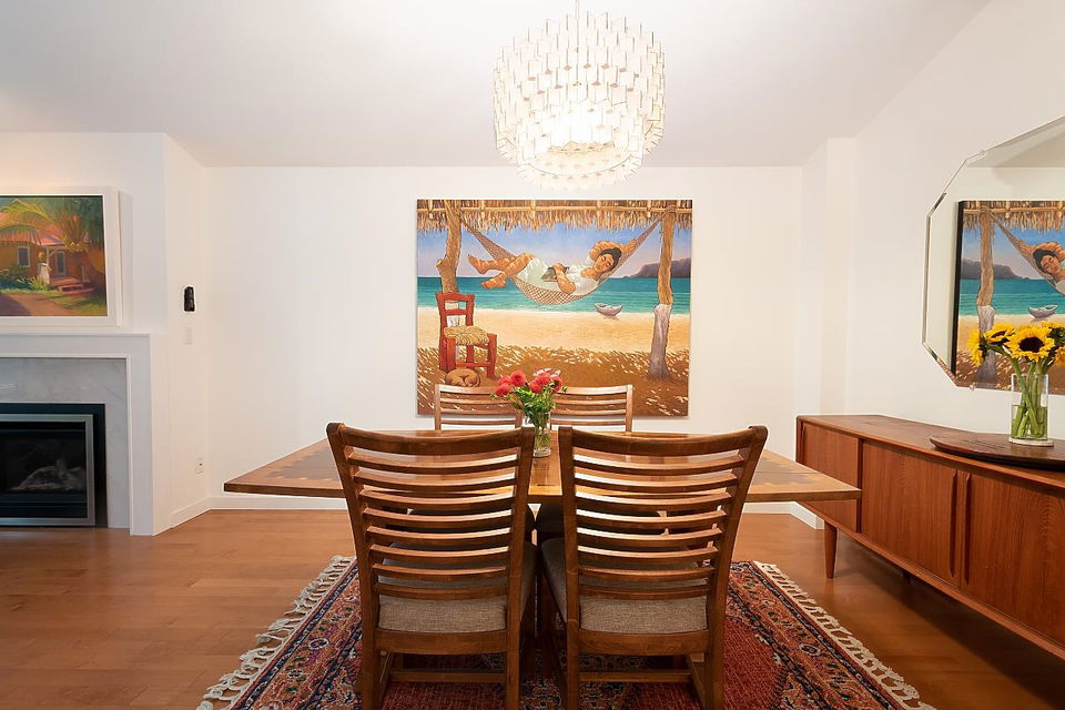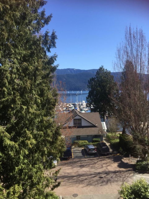 This quintessentially Deep Cove 2 bdrm penthouse with stunning water & mountain views is move in ready. Boasting picturesque views of the marina, yacht club and mountains from a wall of windows and soaring 14’3 ft ceiling height at the peak. Perfectly situated for all you outdoor enthusiasts who enjoy kayaking, paddle boarding, and trail hiking. With Deep Cove park, Panorama park, and Wickenden park practically at your doorstep you are a minute away from anywhere in the Cove you would want to be. Wrap around 201 sq ft balcony, new H/W tank, as well as new induction range, fridge & microwave hood fan. Gas fireplace completely rebuilt, 2 sbs parking & a plethora of shops, delis and restaurants within walking distance. 10 minutes to the 2nd Narrows Bridge, Stongs, #1Hwy.