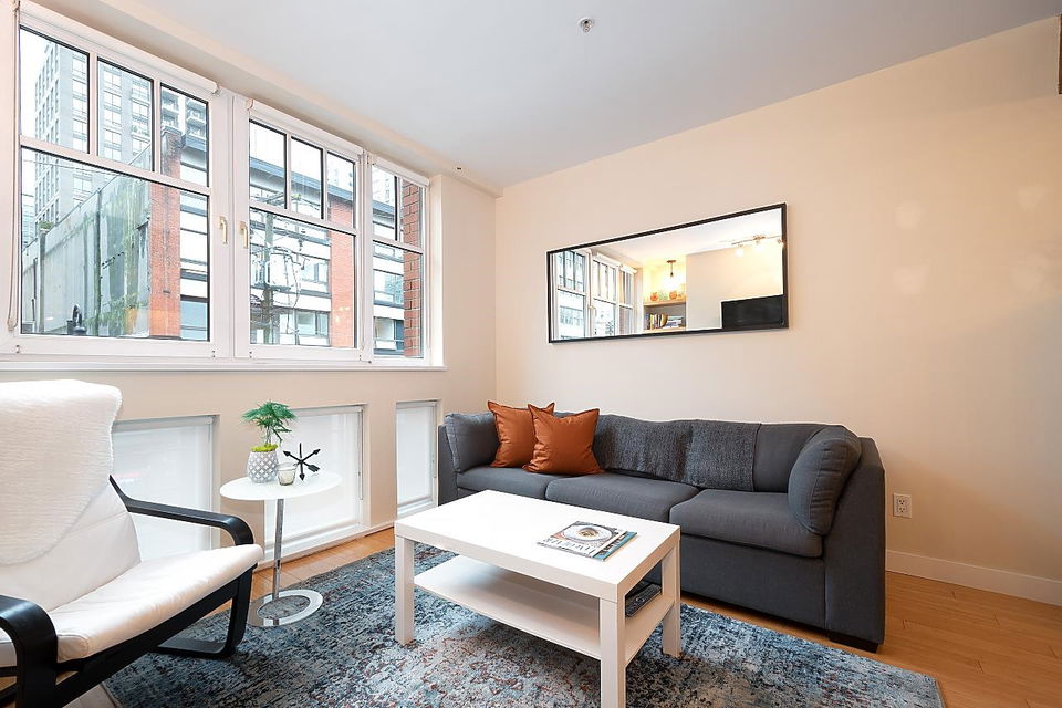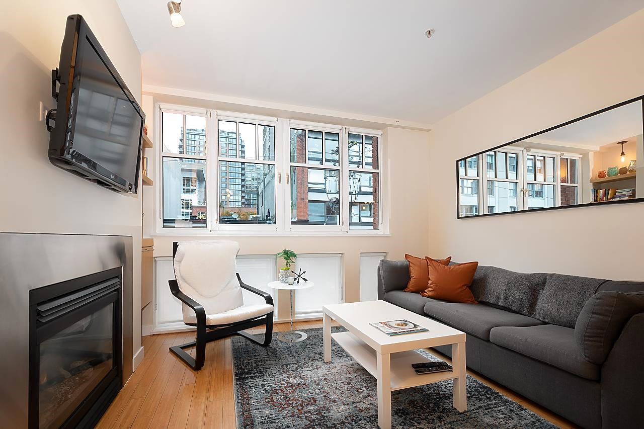 Sophistication & convenience collide to offer a stunningly well-appointed 1 Bdrm + office area in the heart of Yaletown. This immaculately cared for heritage conversion residence in the Crandall w/ H/W flooring, gas fireplace, tilt and turn windows, and over height ceilings are your dreams coming to life. Boasting an open concept, there is no wasted space, upper & lower windows provide natural light and a breezy air flow. Bring your four-legged family members, rentals allowed, s/s appliances, gas range & range with island for entertaining, plus storage locker, no parking. Open house by appointment Saturday November 6 2-4 PM