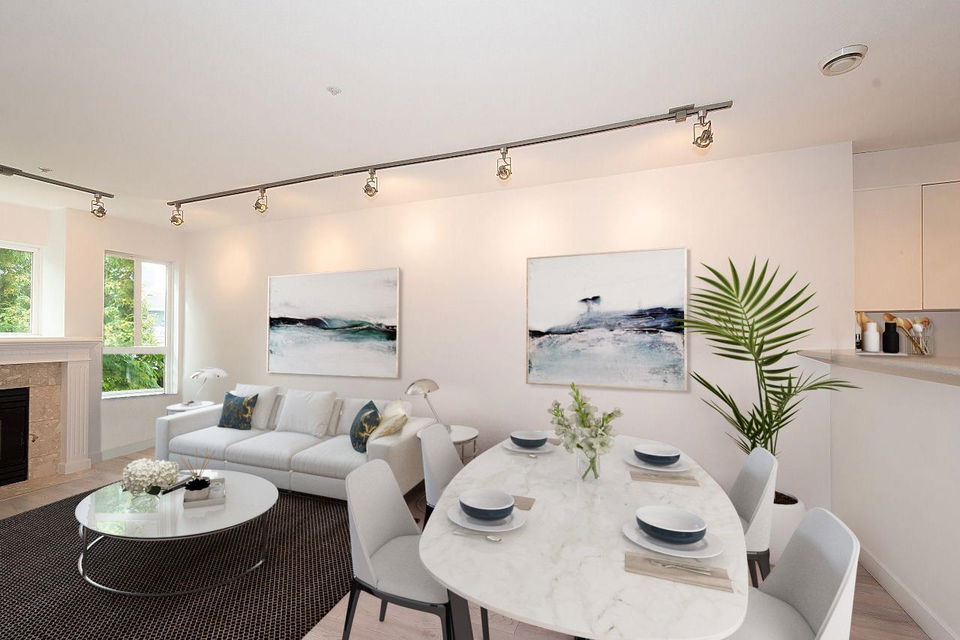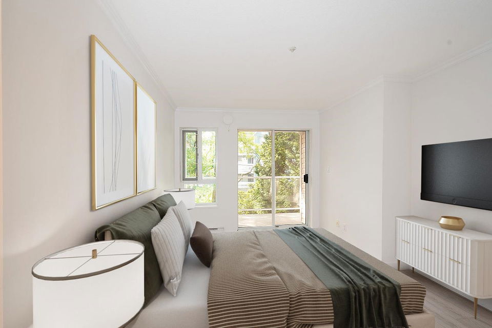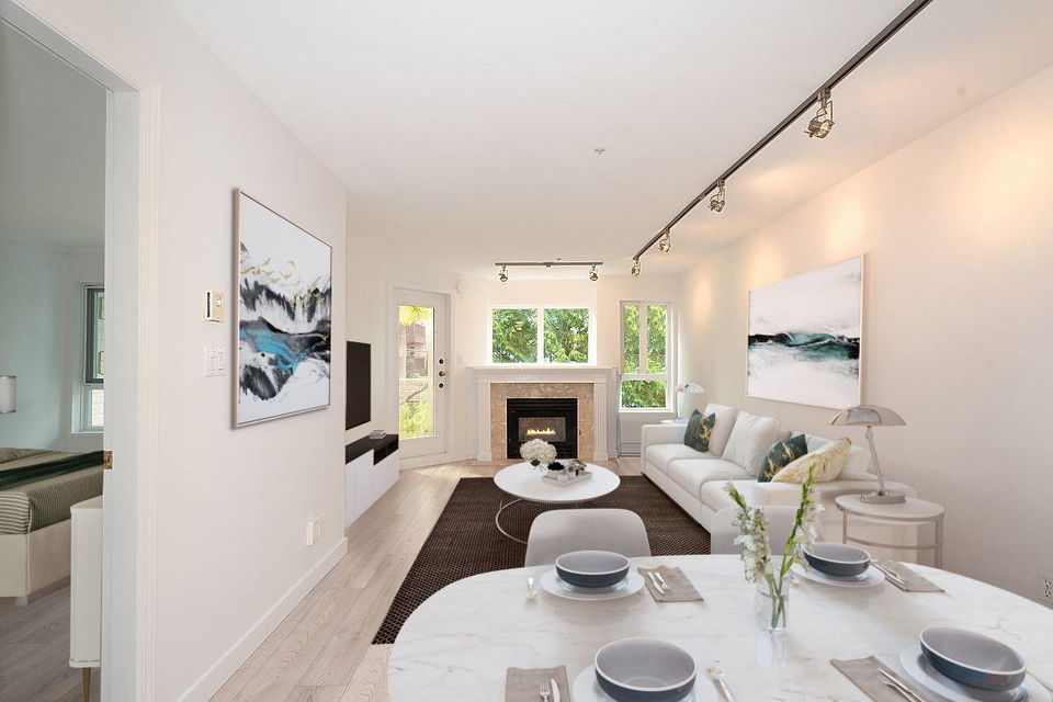 Welcome to City Gardens! This well-appointed open plan 633 sq ft 1 bdrm w/ walk in closet will check all your boxes. Cascaded in natural light, this airy south facing unit with AC, brand new flooring, brand new appliance pkg inc. washer/dryer has it all. Wait there is more! Perfectly perched between the Drive & Hastings Sunrise restaurants, shops, winter & summer farmer’s markets are a stroll away. Easy transit to get just about anywhere, & 15 min to DT. Rain screened in 2008, inc. balconies & windows, new roof in 2005, gas fireplace, parking & storage both in the unit & locker. Bring your 4-legged family members pets welcome. Very easy to show Measurement approx. & should be verified if important digitally staged photos.
