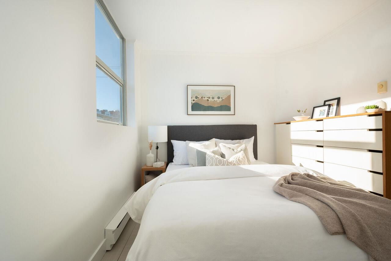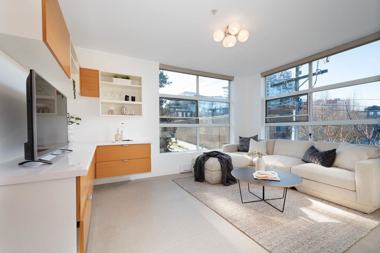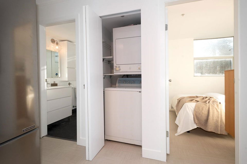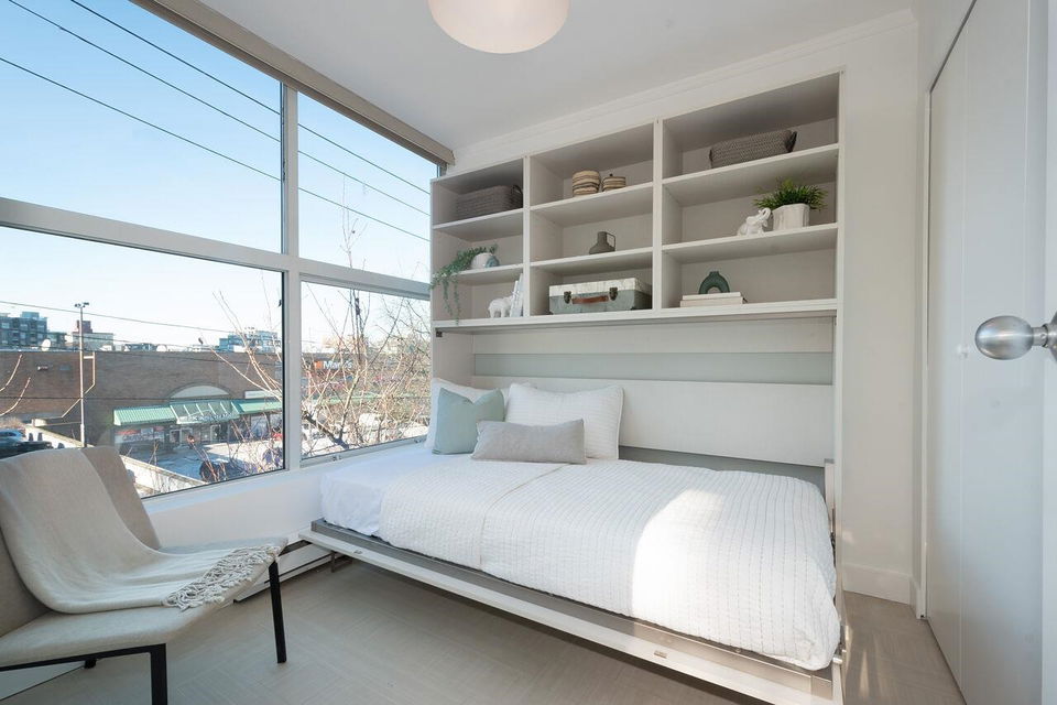 It is always better to give than receive, so here you are! This bright, 2 brdm 1 bath corner unit boasting windows on both sides cascades natural light throughout. Add to this, a location in the epicenter of Mount Pleasant, insuite laundry, freshly painted, parking, storage! All you need to do is pack! It is going to get better, there is a plethora of built-in storage in the entrance & primary bedroom. 2nd bedroom has the convenience of a murphy bed suiting the room for either a bedroom, guest room or home office. This proactive building is pet friendly and close to all things Mt Pleasant: transit, parks, restaurants, & shopping Open House Jan 20 1:00-3:00 & Jan 21 2:00-4:00 PM