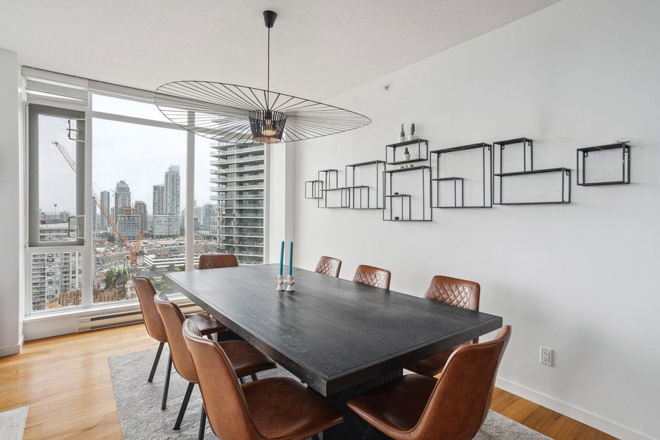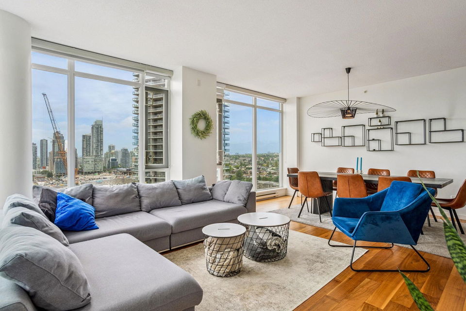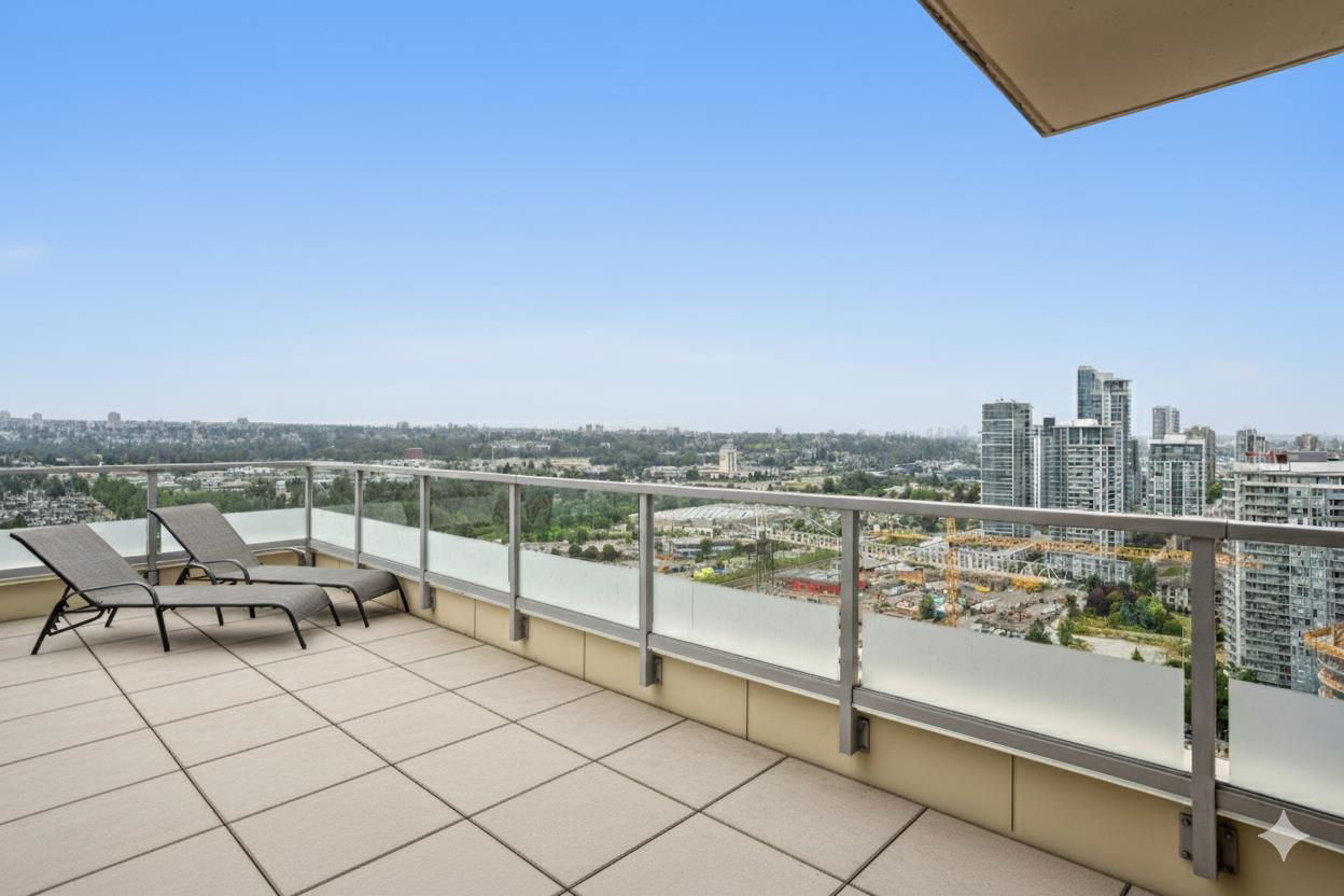 This rare Sub Penthouse corner home in Brentwood offers 3 bedrooms, 3 bathrooms, and an impressive 1,354 sq ft of well-designed living space. Enjoy spectacular southwest views from the oversized terrace, accessible from both the living room and primary suite. Inside, the open-concept layout features floor-to-ceiling windows, hardwood floors, and a sleek kitchen with granite counters, designer stainless steel appliances, and a huge centre island. The primary suite includes a walk-in closet and a spa-like 5-piece ensuite. With two parking stalls, a storage locker, and an unbeatable location just steps from Brentwood Town Centre, this sub-penthouse is the perfect blend of space, style, and convenience. OPEN HOUSE * SAT NOV 15th 1-3PM, SUN 16th 2-3:30PM