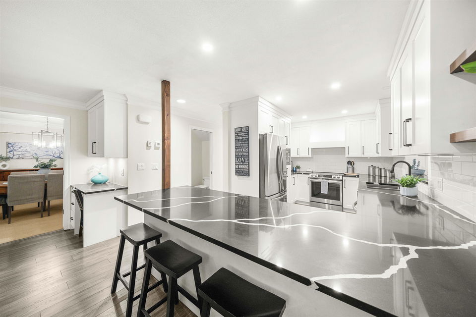 Beautifully renovated 4 bed/3 bath home in Nielsen Grove w/ a bright open main level designed for modern living & entertaining. Enjoy a stunning fully renovated white kitchen w/ lrg island, quartz counters, oven & built-ins, opening to a spacious dining & living area flooded w/ natural light. French doors lead to a a covered deck+ fully fenced, private yard-perfect for year-round lounging, kids, pets & outdoor dining. Lower level offers a large family/rec space, stylish laundry+ flex area. Upstairs features generous sized bdrms incl. a serene primary w/ walk in closet+ ensuite. Many upgrades over the last 5 years, come and check them out in person! Steps to golf, marina, trails&schools-this is the perfect family home in one of Ladner's most sought-after neighbourhoods. OpenHouse 01/11 2 -4