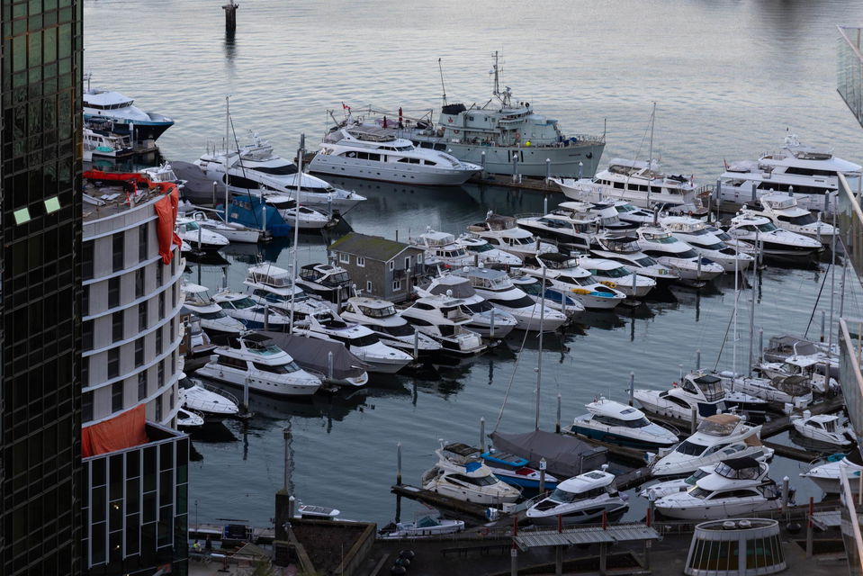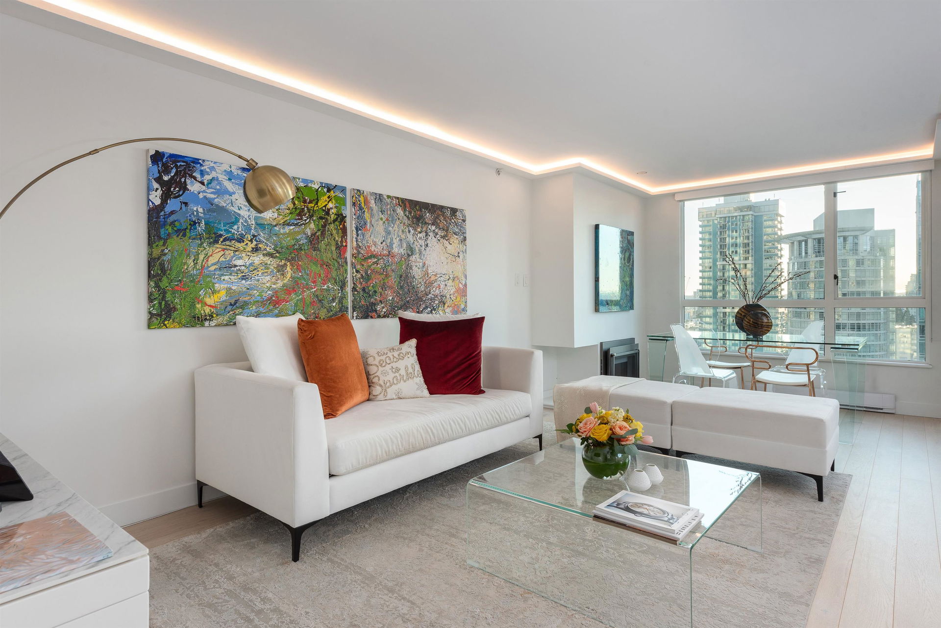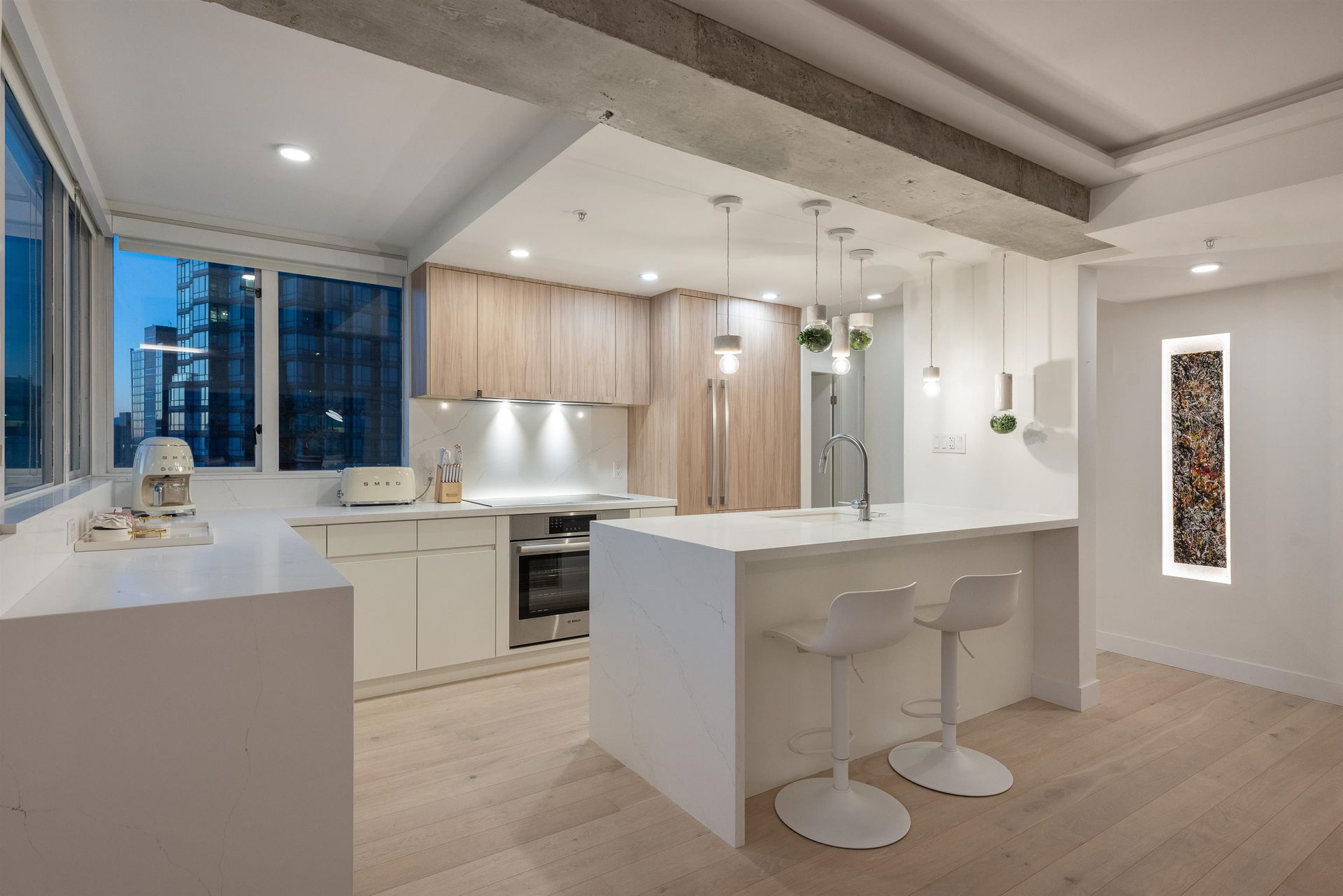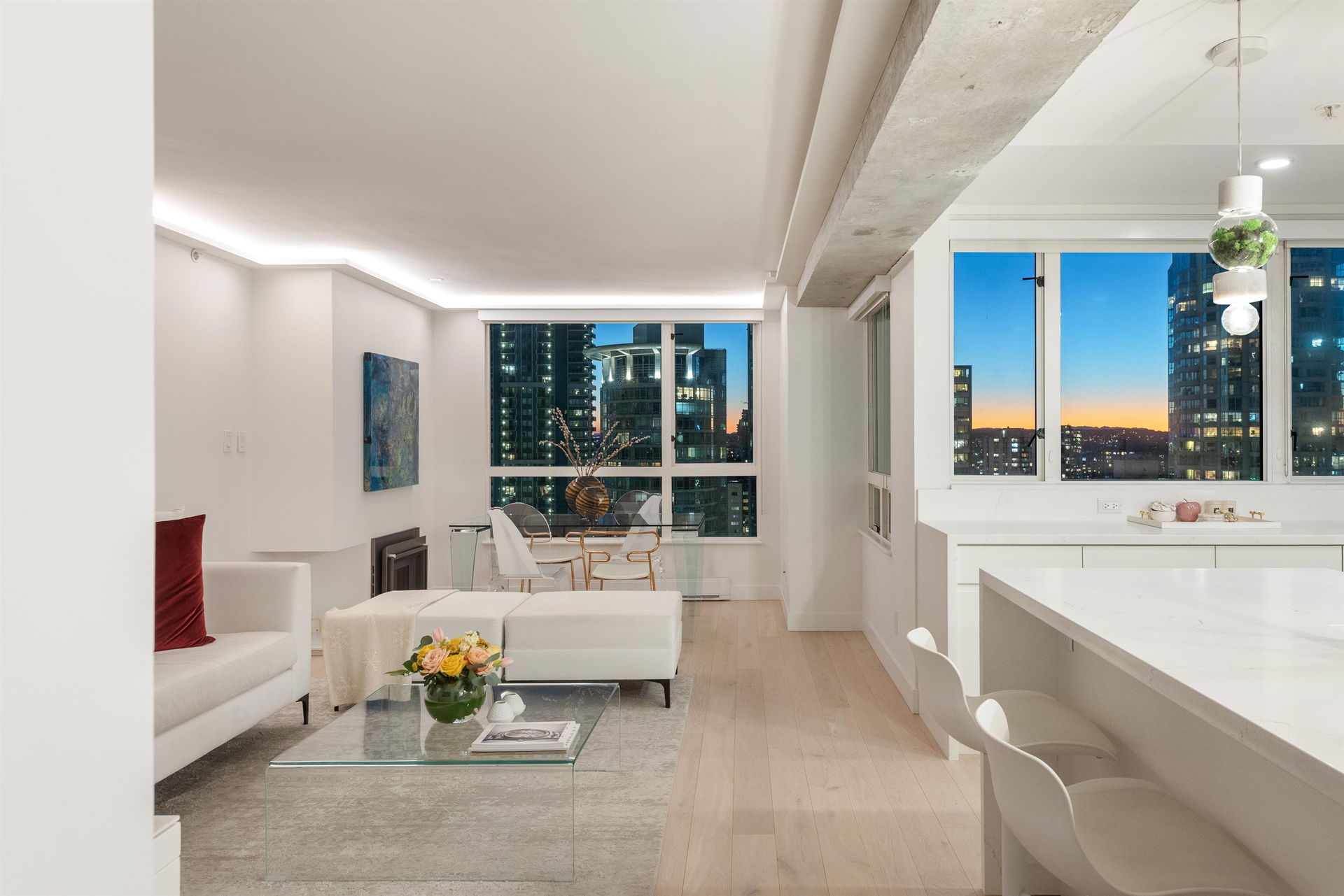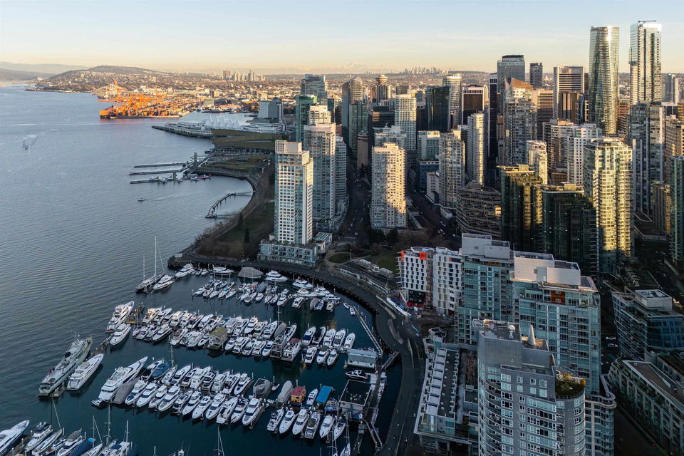 Welcome to Pointe Claire, a luxury high-rise nestled in the heart of Coal Harbour. No detail has been overlooked in this fully renovated, 3-bedroom, corner suite. This home features a thoughtfully designed open-concept layout, perfect for living, dining, and entertaining. The professional renovation includes hardwood flooring, brand-new stainless steel appliances, marble/quartz countertops, energy-efficient electric baseboards, modern lighting fixtures and more. Spanning nearly 1200 SOFT, enjoy breathtaking views from your floor-to-ceiling windows of the marina, city and sunsets. Just steps from the seawall, Stanley Park, and top amenities. Book your private viewing today!